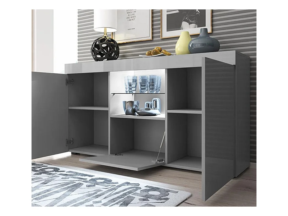 Bahut Buffet pour Salon Salle à manger en Gris avec LED 135x34x72cm Sefora