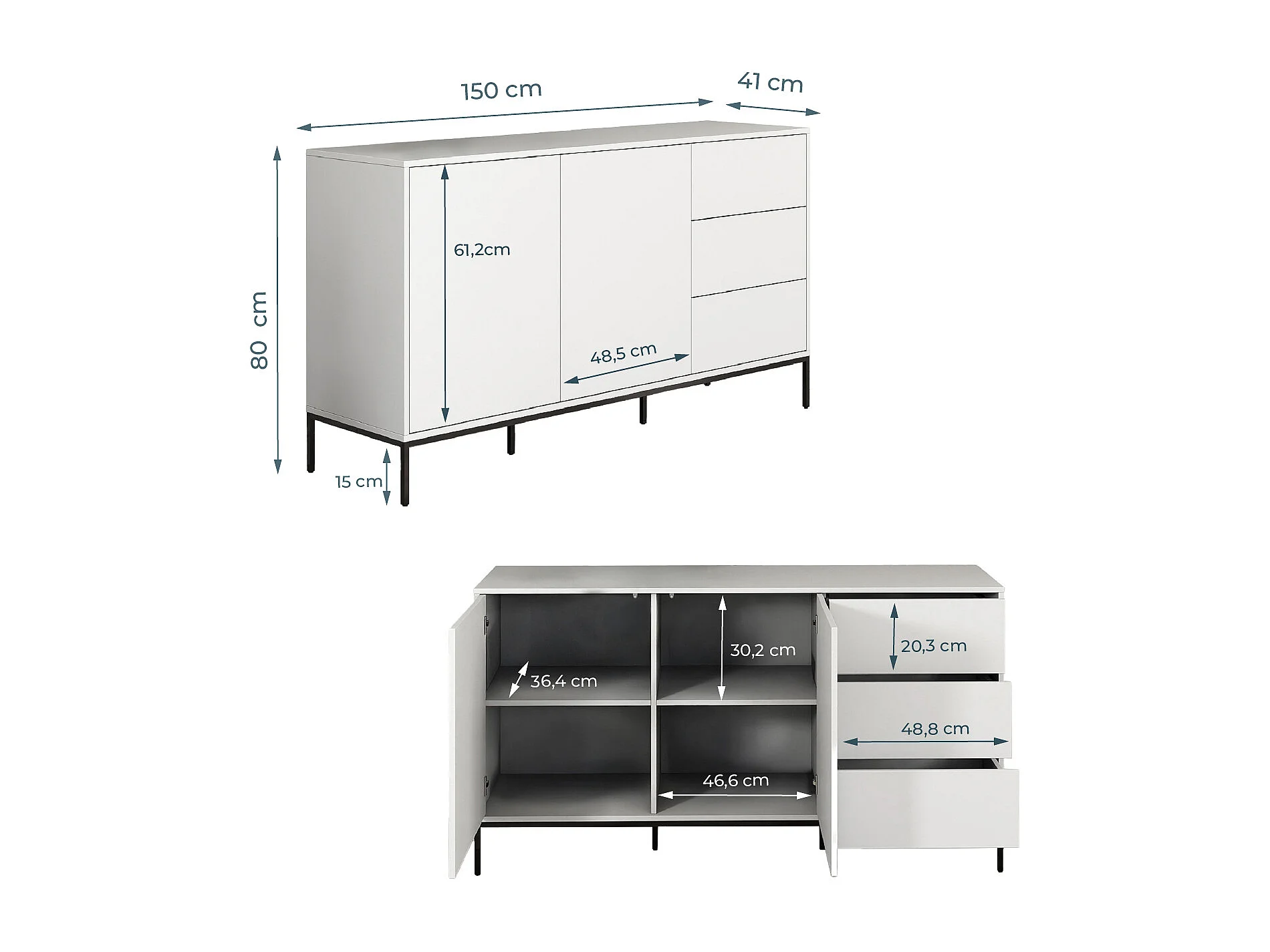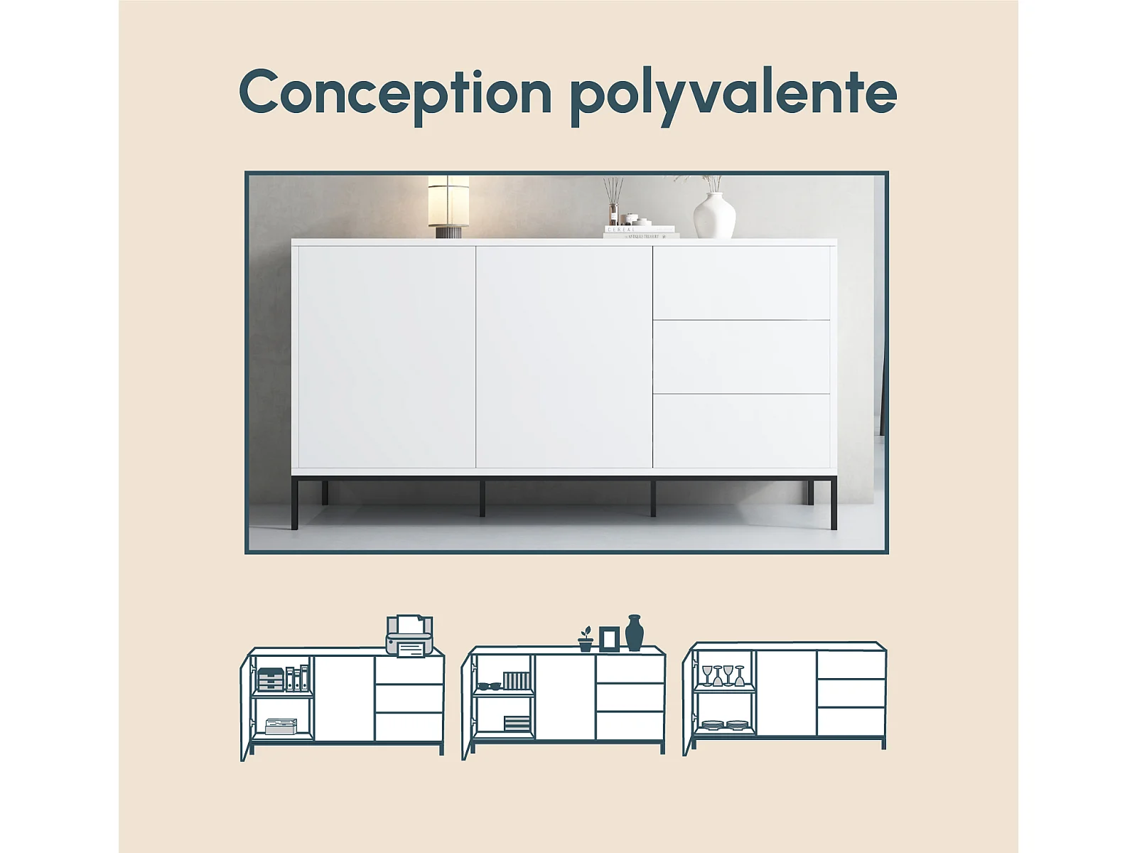 Bahut Buffet pour Salon Salle à manger en Blanc 150x41x80cm Serena