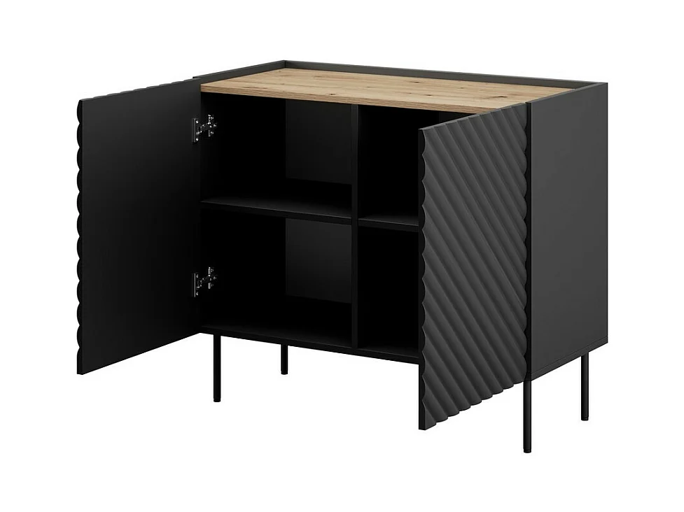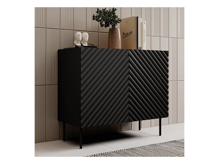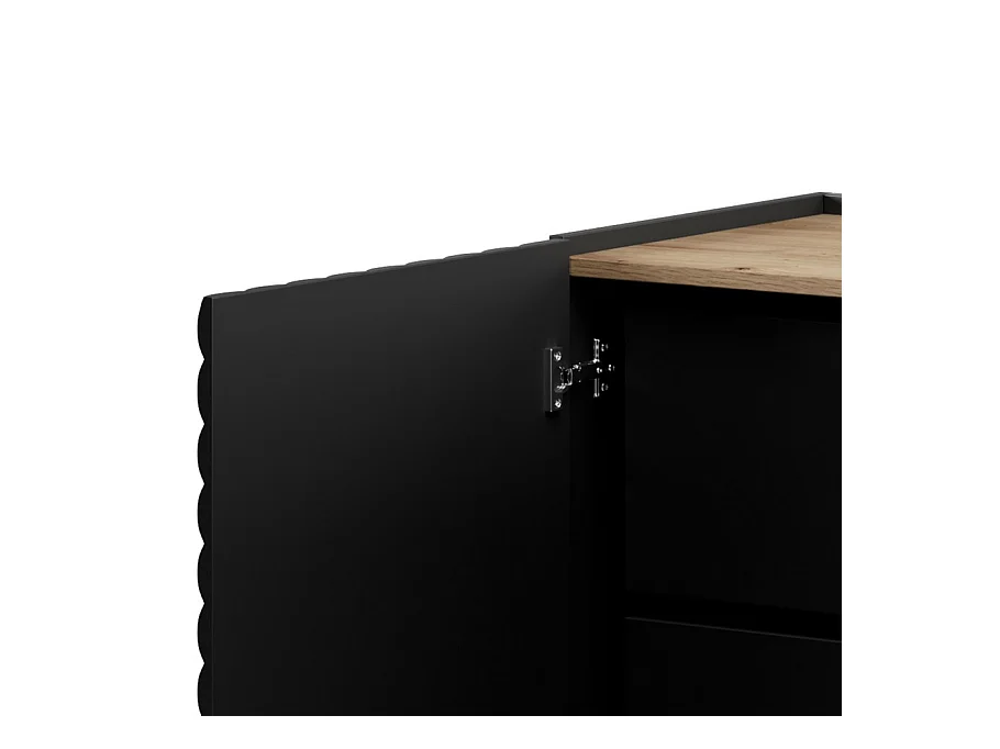 Bahut noir et bois 2 portes avec façades 3D Emile