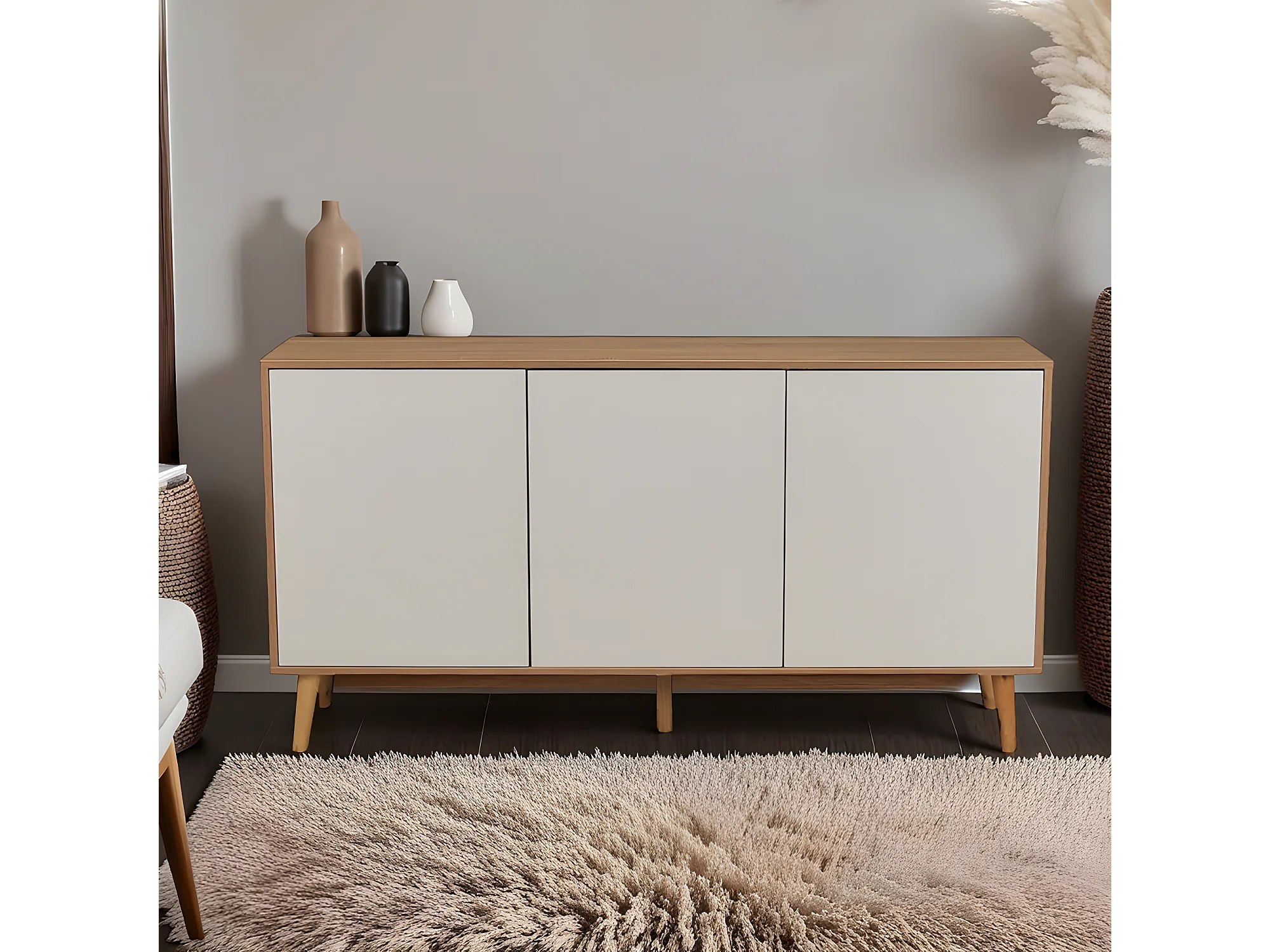 Bahut Norway 3 portes / chêne blanchi et blanc