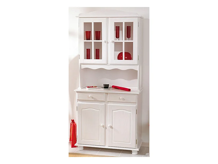 Bahut vaisselier de 2 portes VALENCIA en pin colors blanc, 43 x 88 x 198 cm