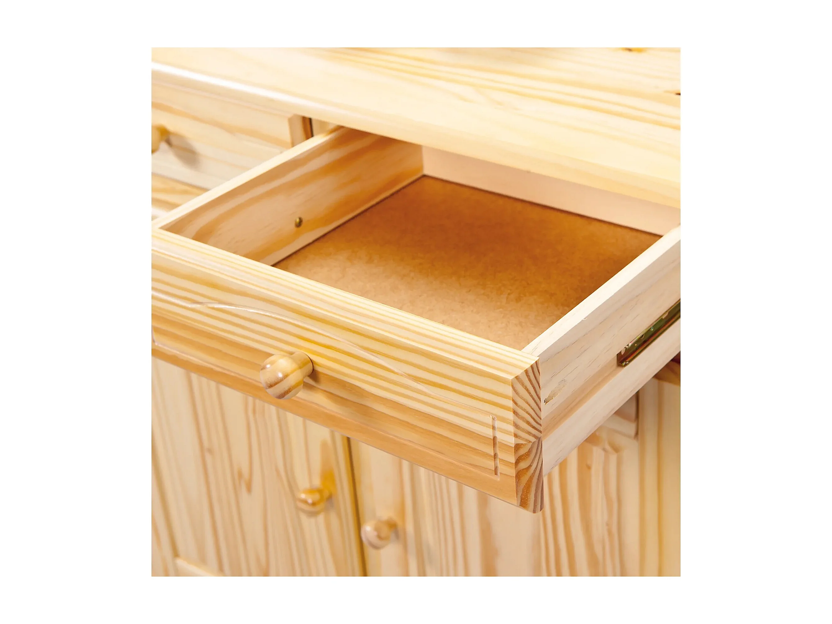 Bahut vaisselier toscana en pin massif vernis naturel, 43 x 130 x 198 cm