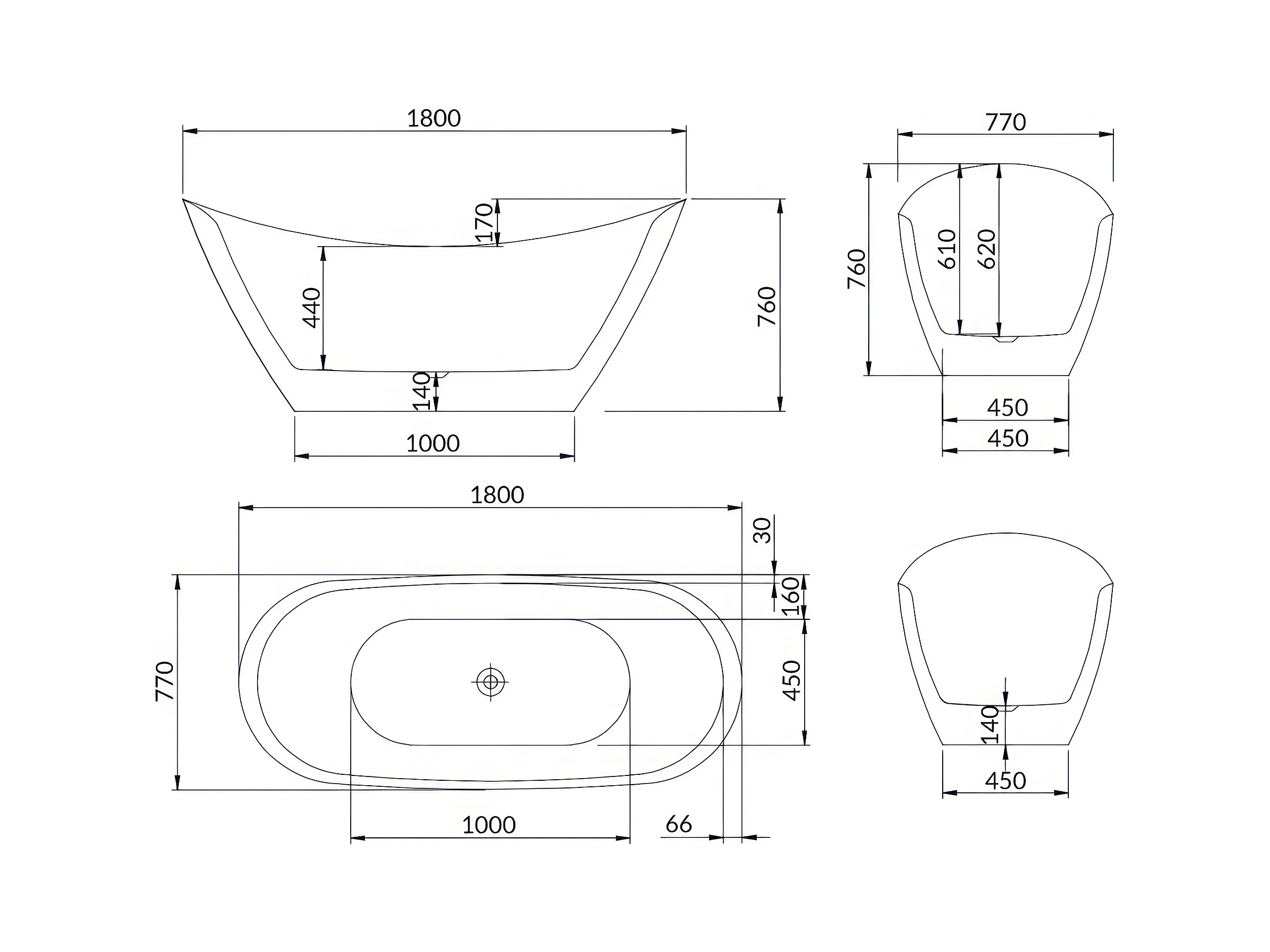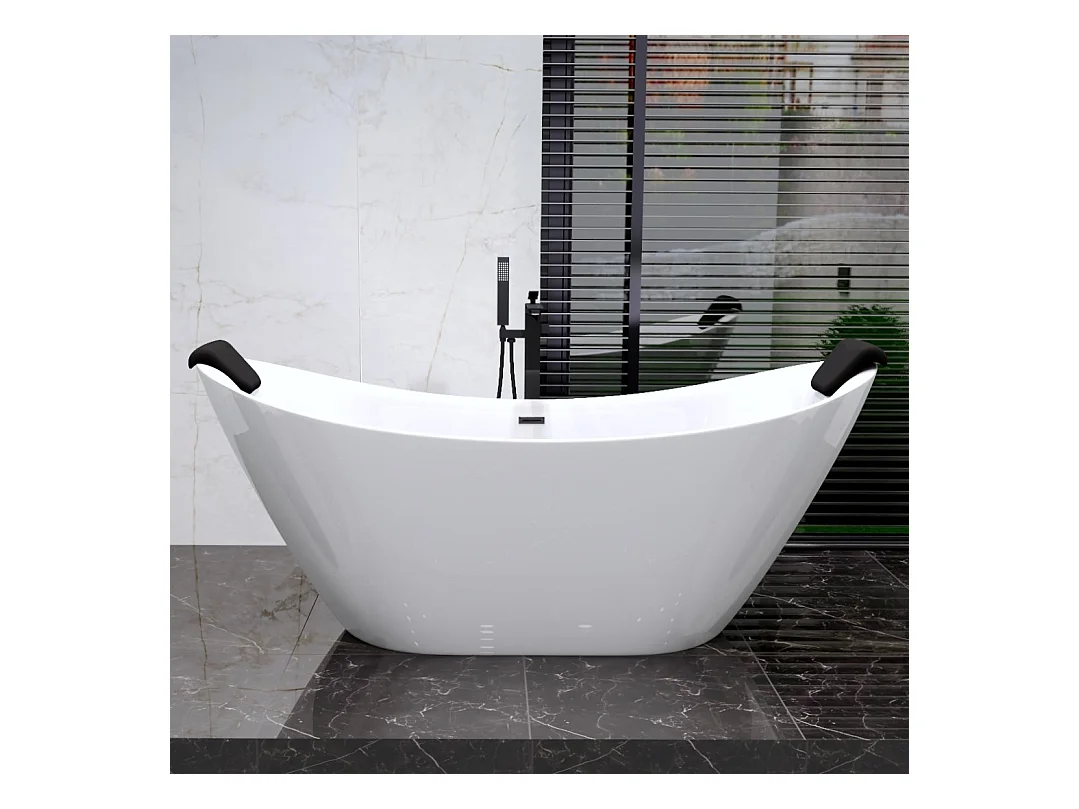 Baignoire à poser îlot IVAR 180x80 acrylique blanc + appuie-tête KODI (2 pcs.) + Vidage à chromé