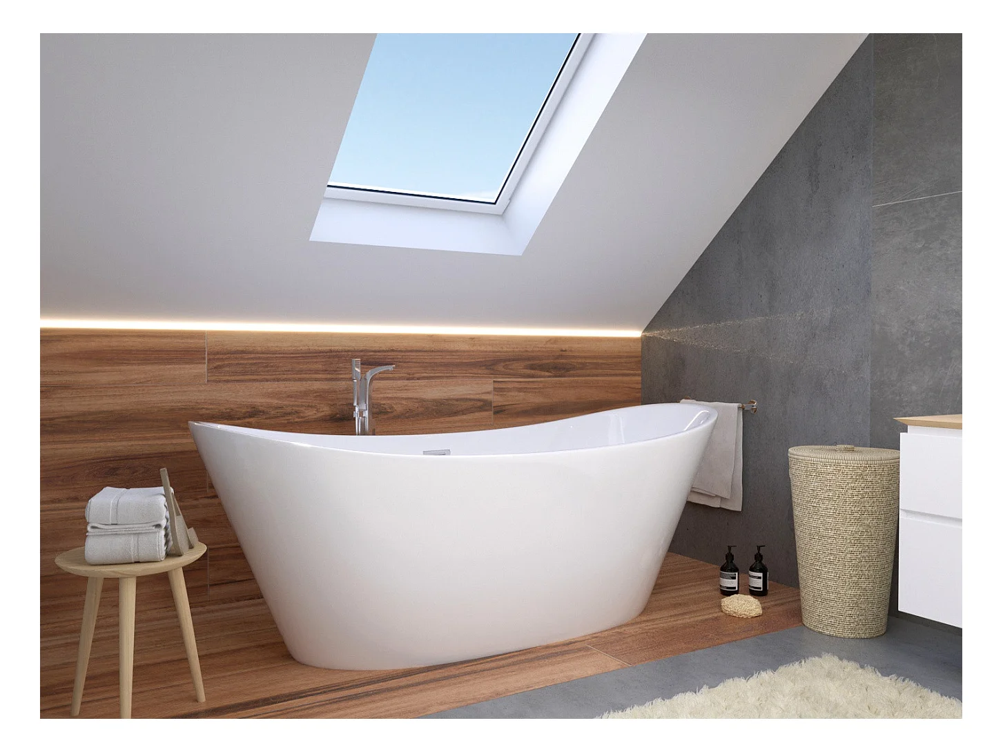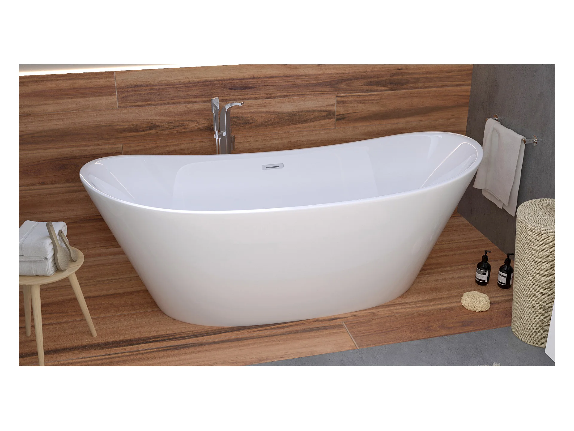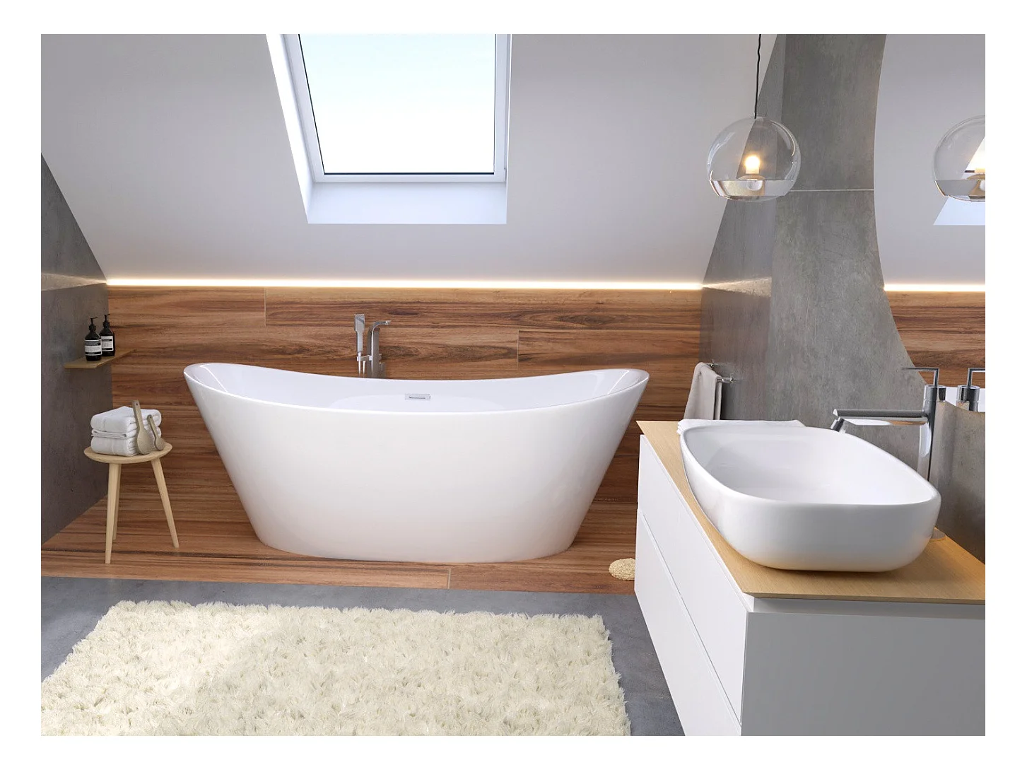 Baignoire à poser îlot oval ROSSA 170x80 acrylique blanc + Vidage à chromé
