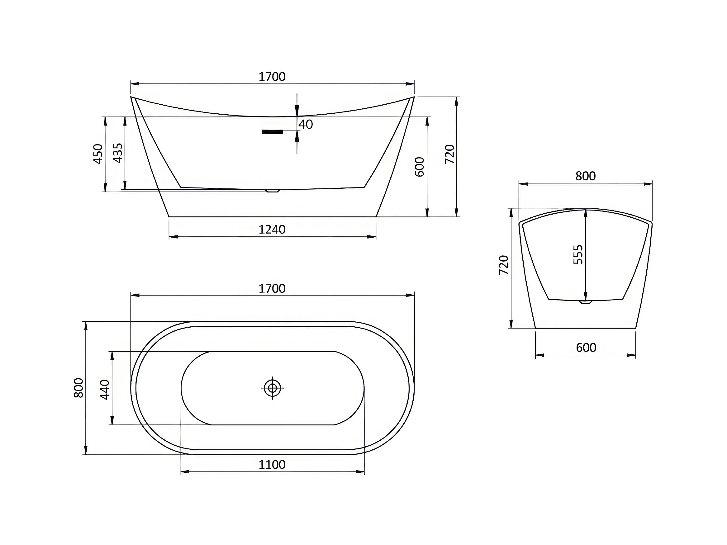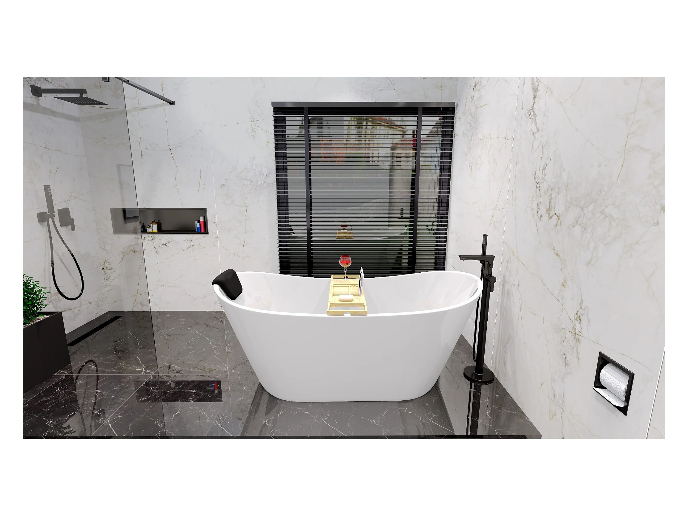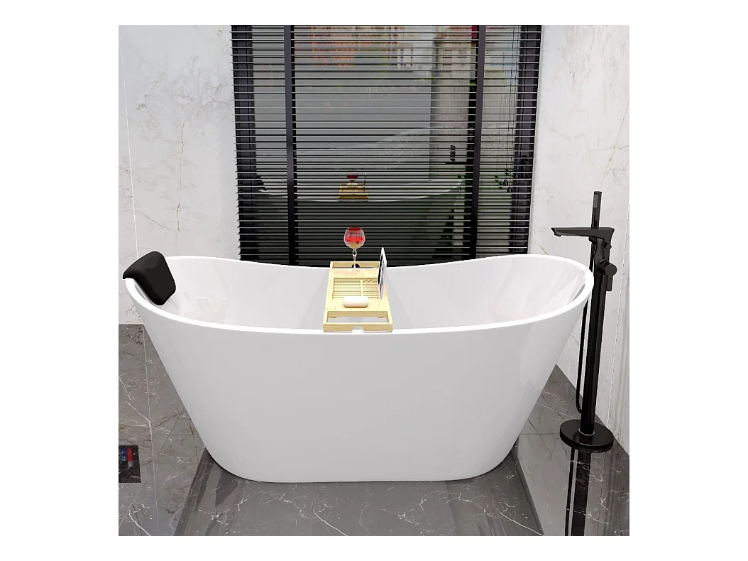 Baignoire à poser îlot ROSSA 170x80 acrylique blanc + appuie-tête KODI + Vidage à chromé