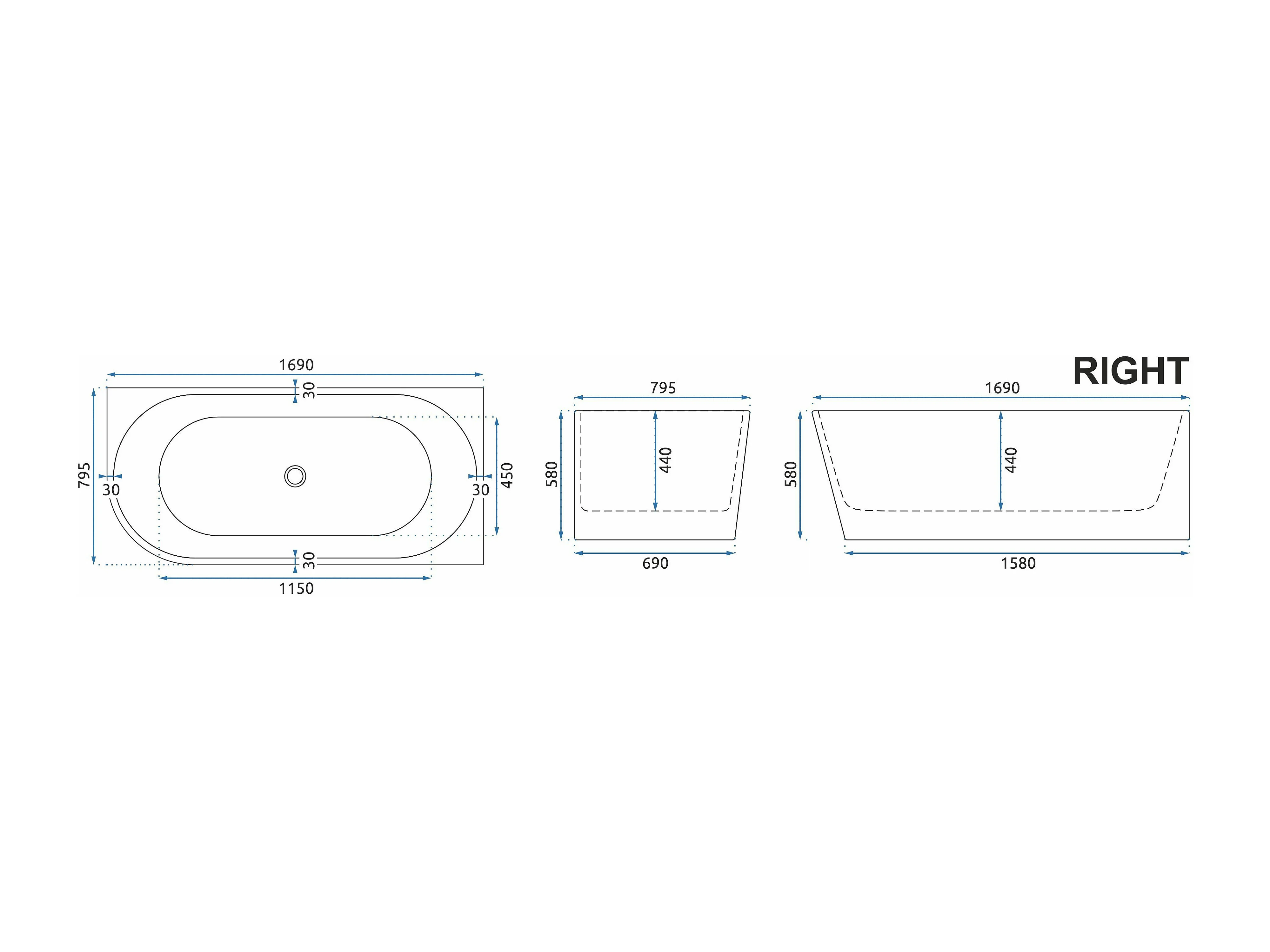 Baignoire Acrylique Rea Sydney 170Cm Right White