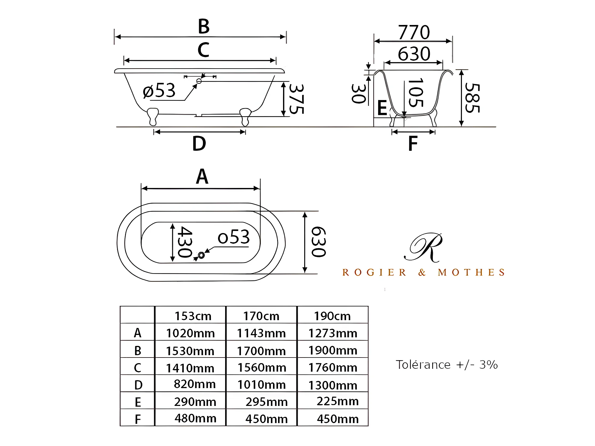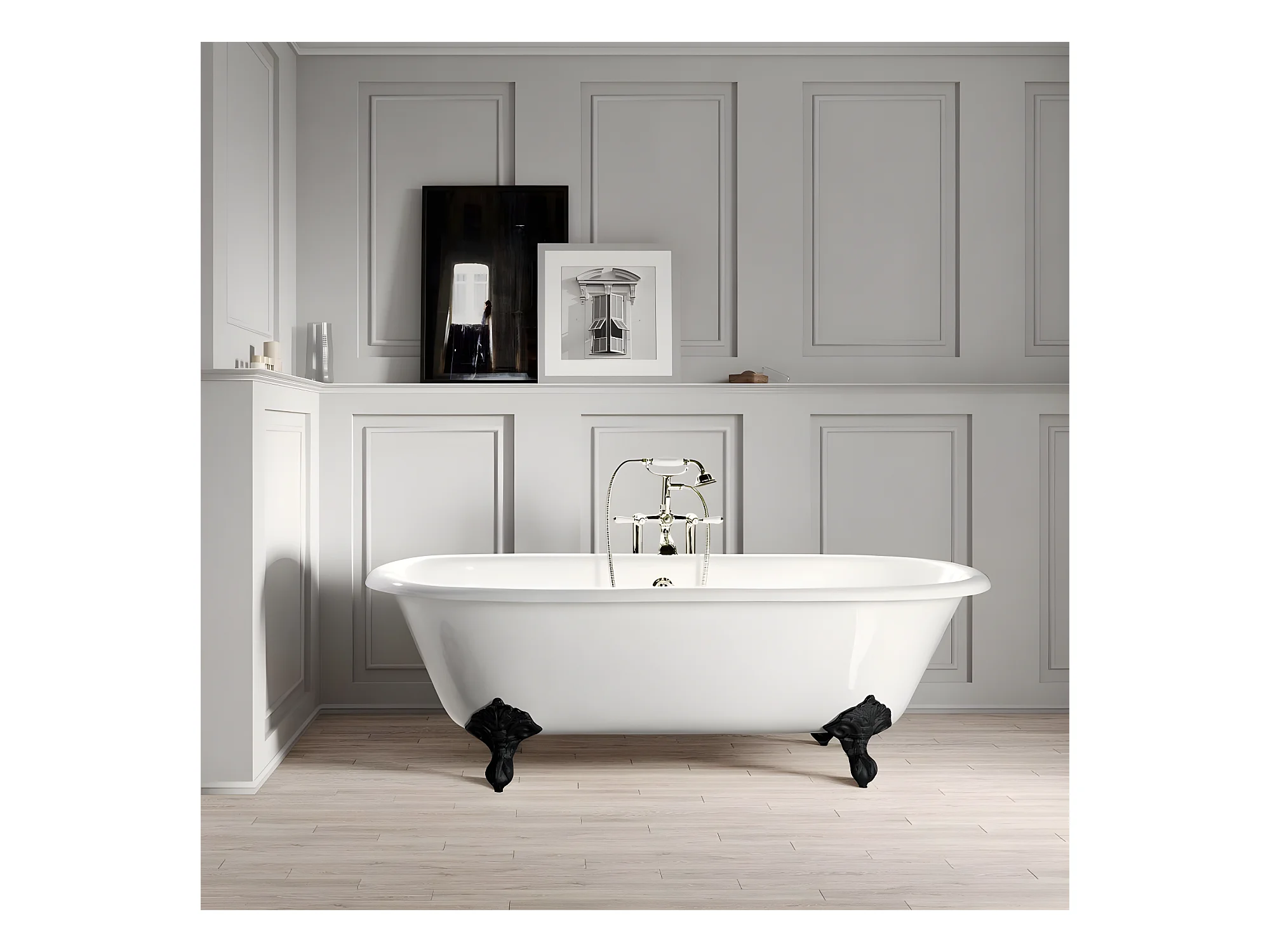 Baignoire sur pieds en fonte PLYMOUTH Blanche 153 cm Pieds noirs