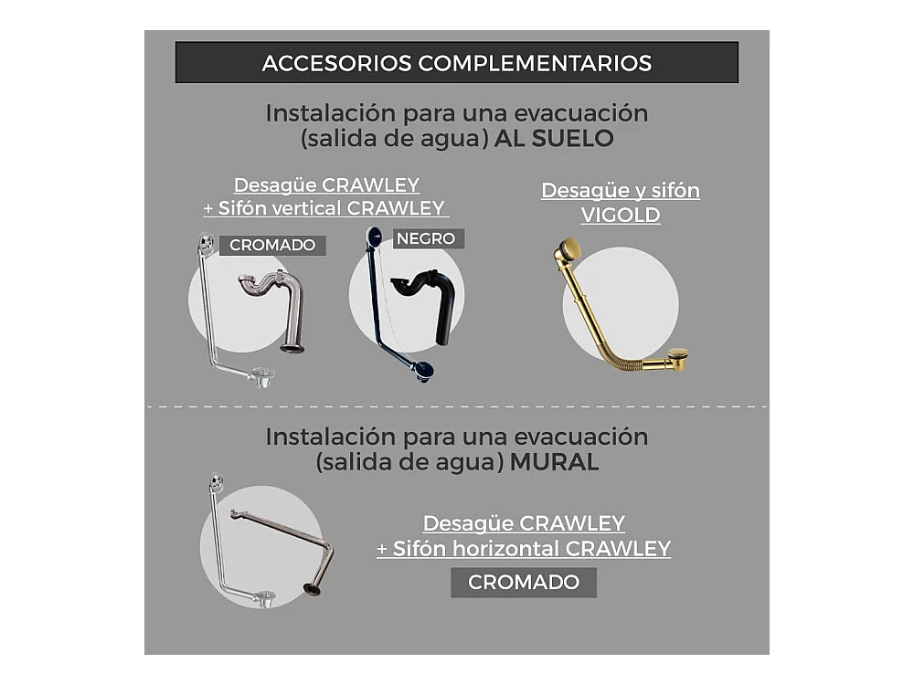 Baignoire sur pieds en fonte PLYMOUTH Grise 153 cm Pieds chromés