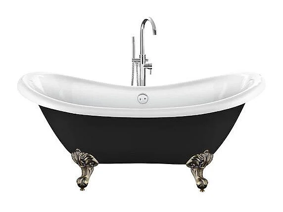 Baignoire sur pieds rétro DARLINGTON Noire 175 cm Pieds d'Aigle Bronze jaune vieilli