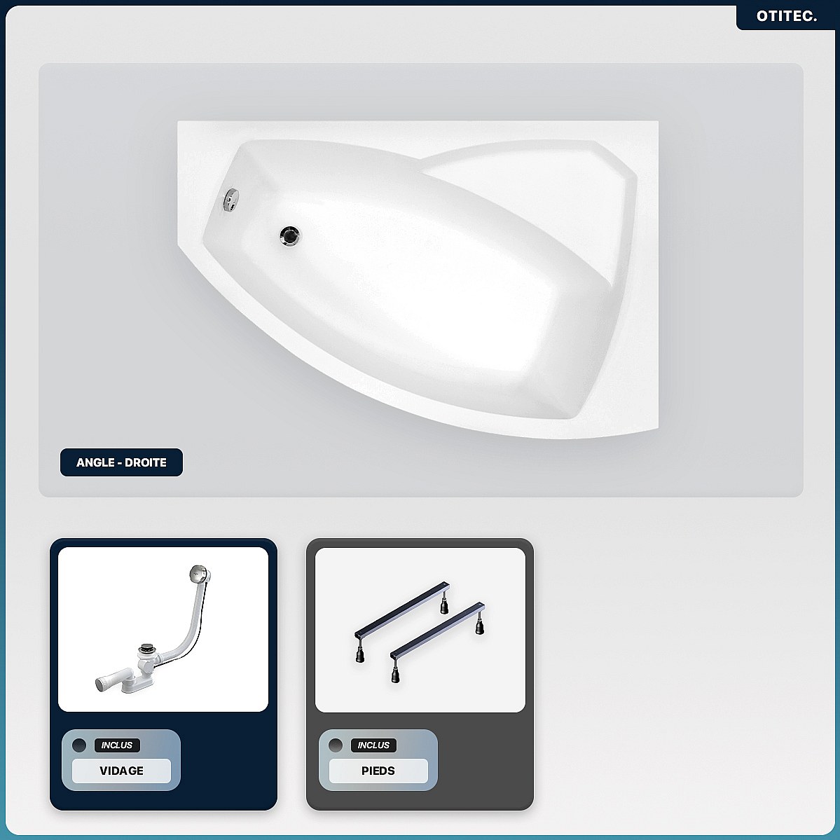 Baignoire asymétrique - 130 x 85 cm - Droite - sans Habillage - avec Pieds - Vidage Chrome - RIMA