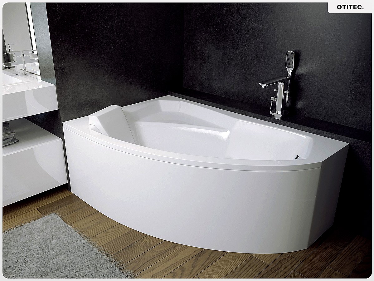 Baignoire asymétrique - 140 x 90 cm - Gauche - avec Habillage - Pieds - Vidage Chrome - RIMA