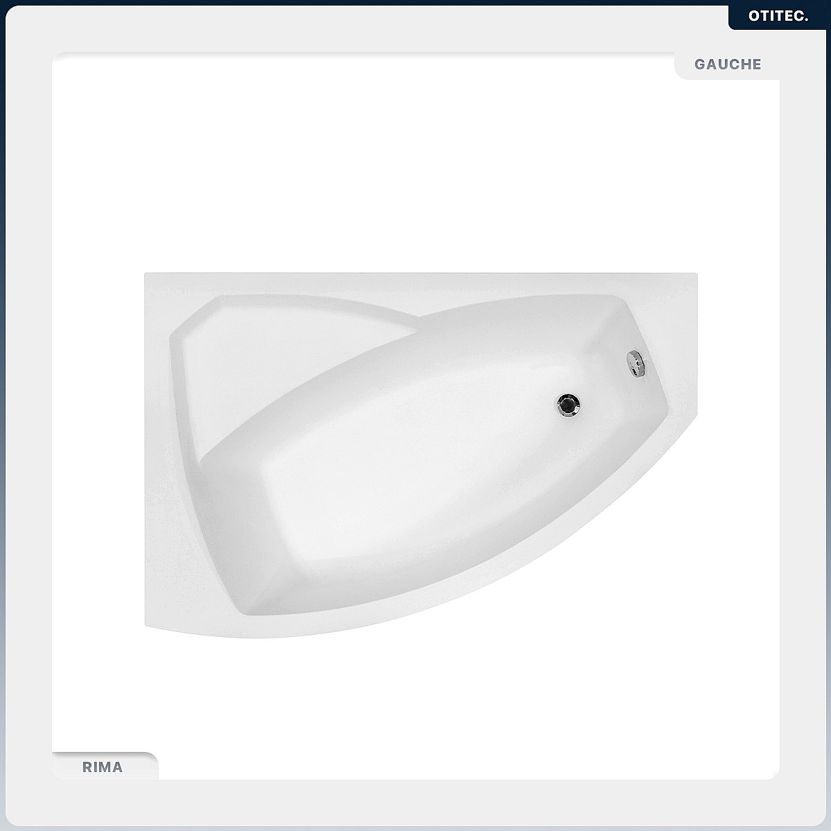 Baignoire asymétrique - 140 x 90 cm - Gauche - avec Tablier - Pieds - Vidage Chrome - RIMA