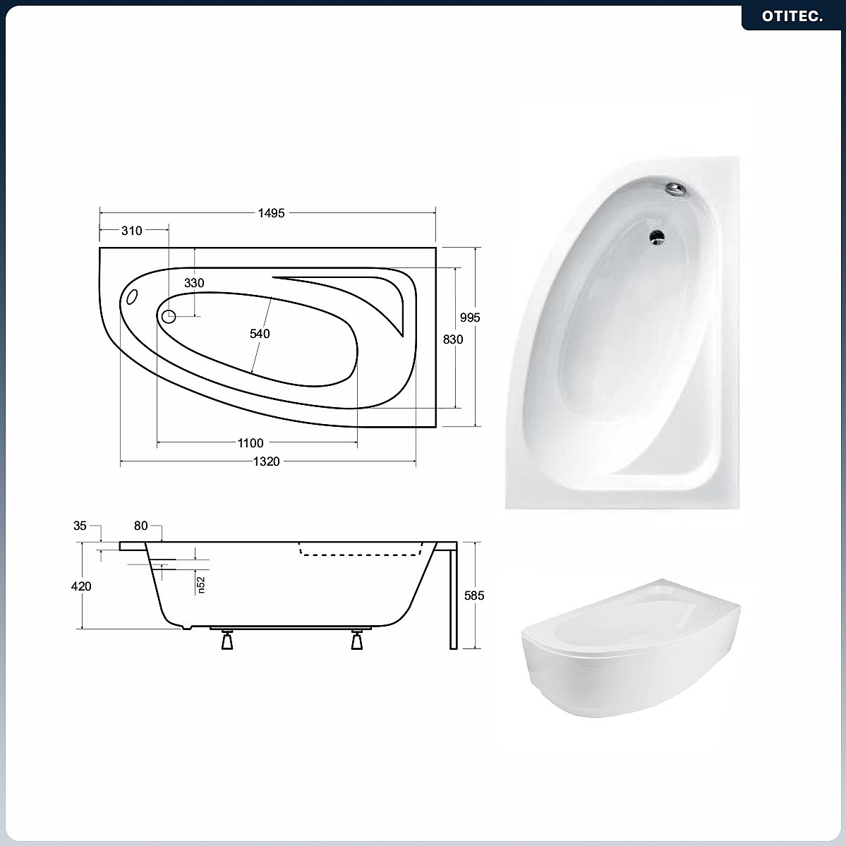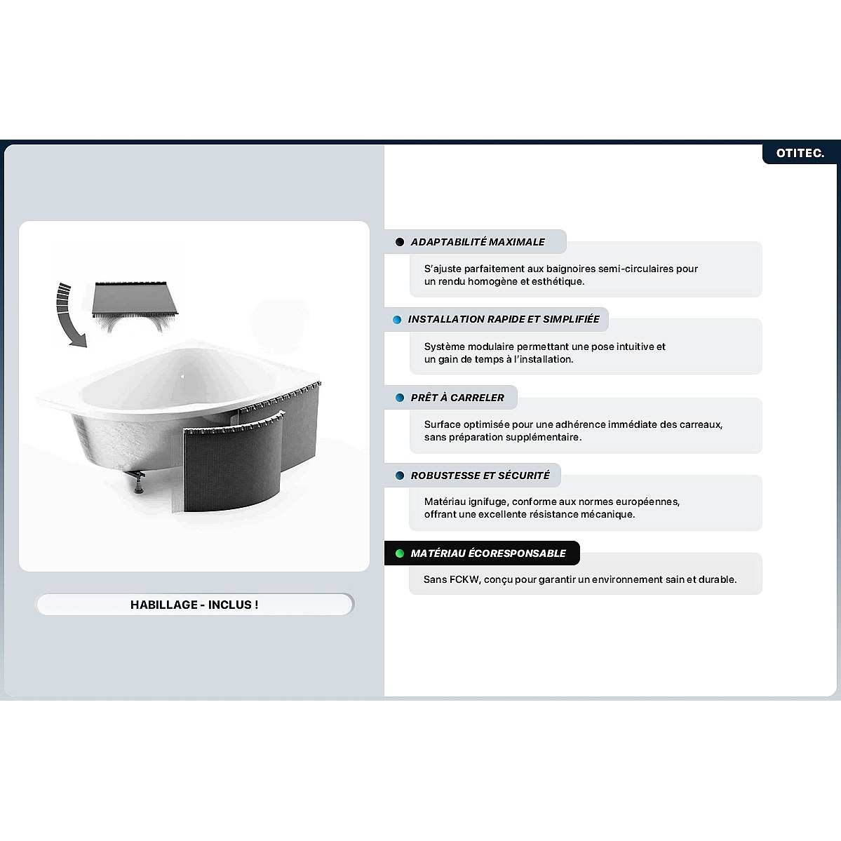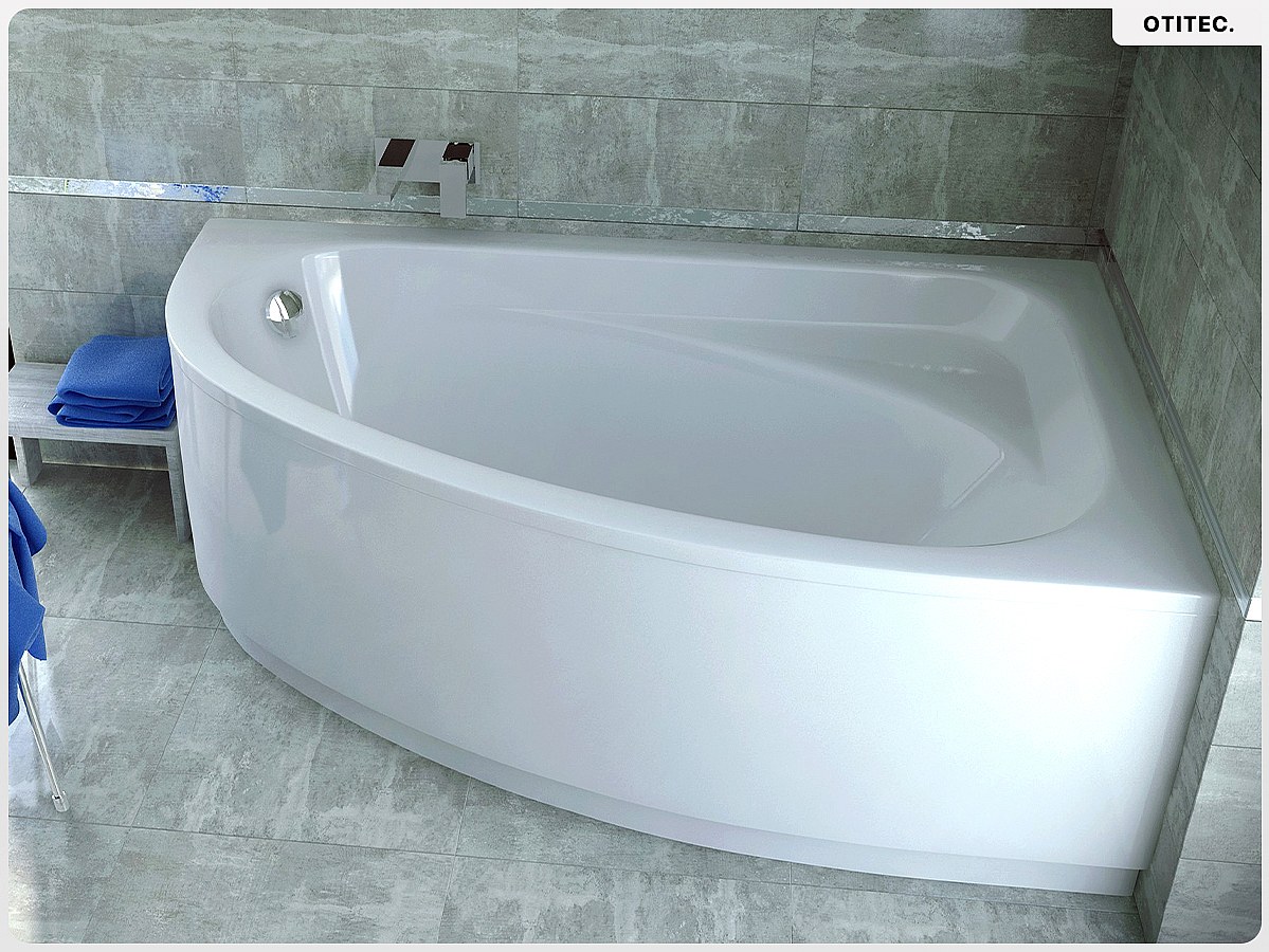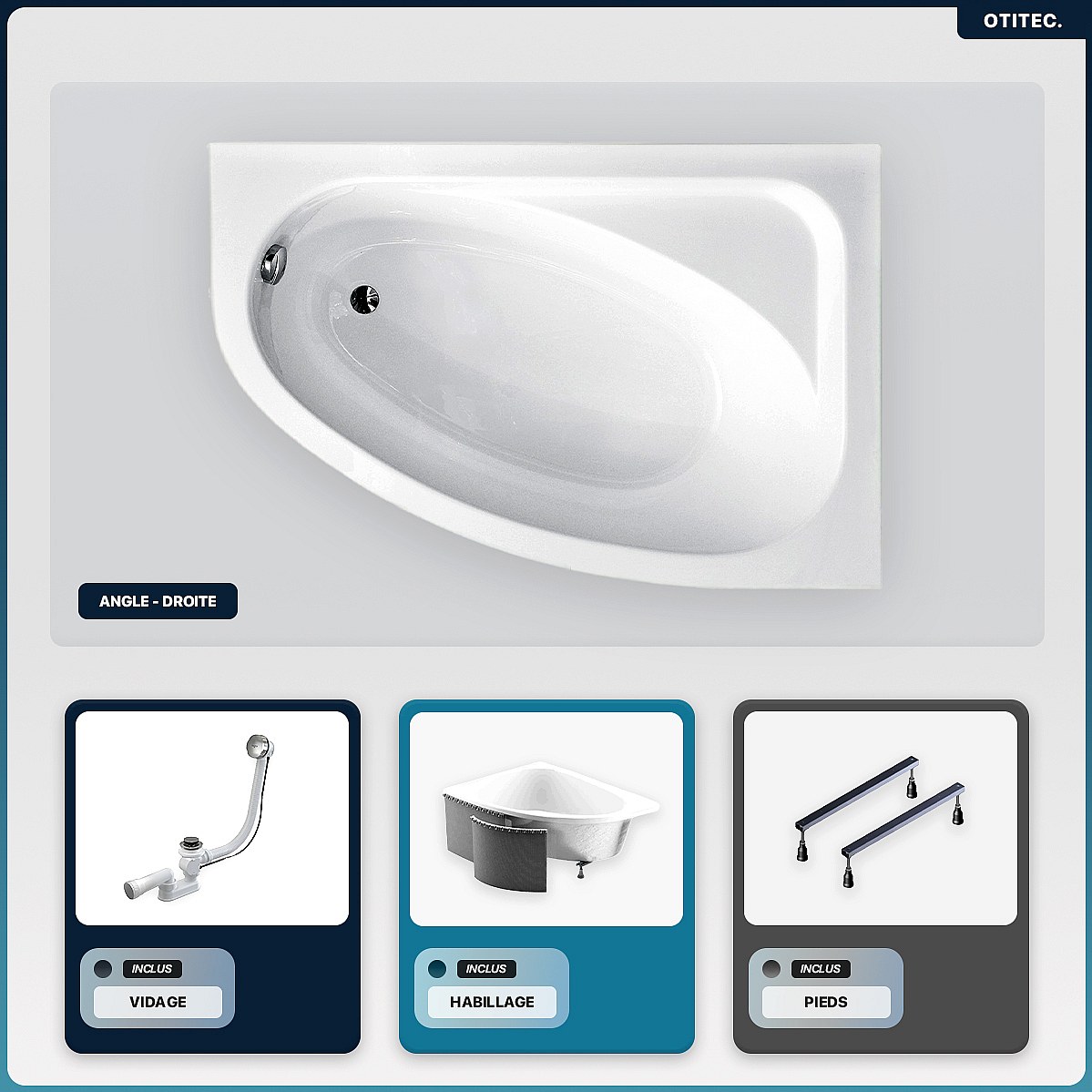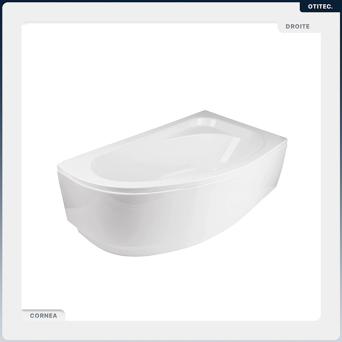 Baignoire asymétrique - 150 x 100 cm - Droite - avec Habillage - Pieds - Vidage Chrome - CORNEA