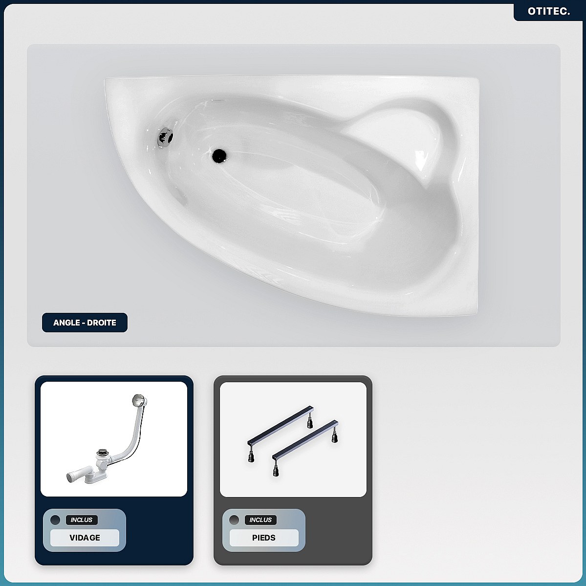 Baignoire asymétrique - 150 x 100 cm - Droite - avec Tablier - Pieds - Poignées - Repose-tête - Vidage Chrome - NATALIA PREMIUM