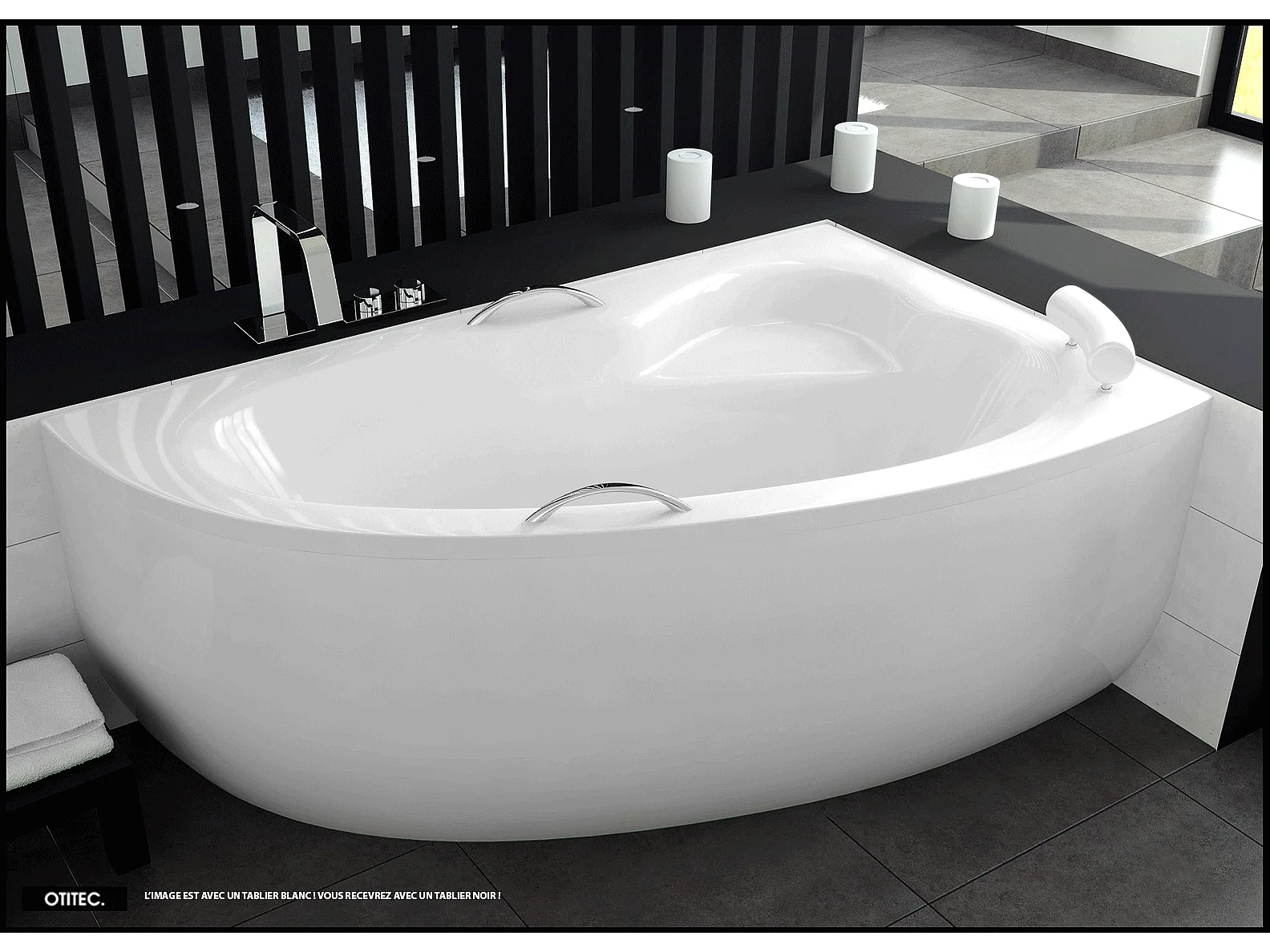 Baignoire asymétrique - 150 x 100 cm - DROITE - NATALIA PREMIUM - Tablier Noir - avec SIPHON NOIR OFFERT