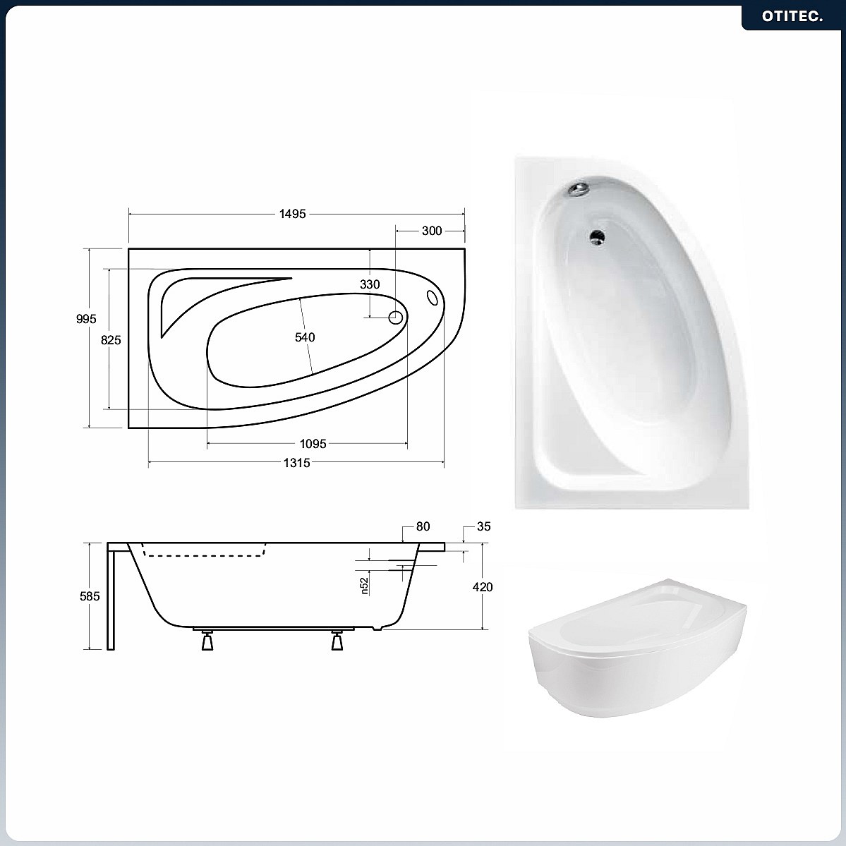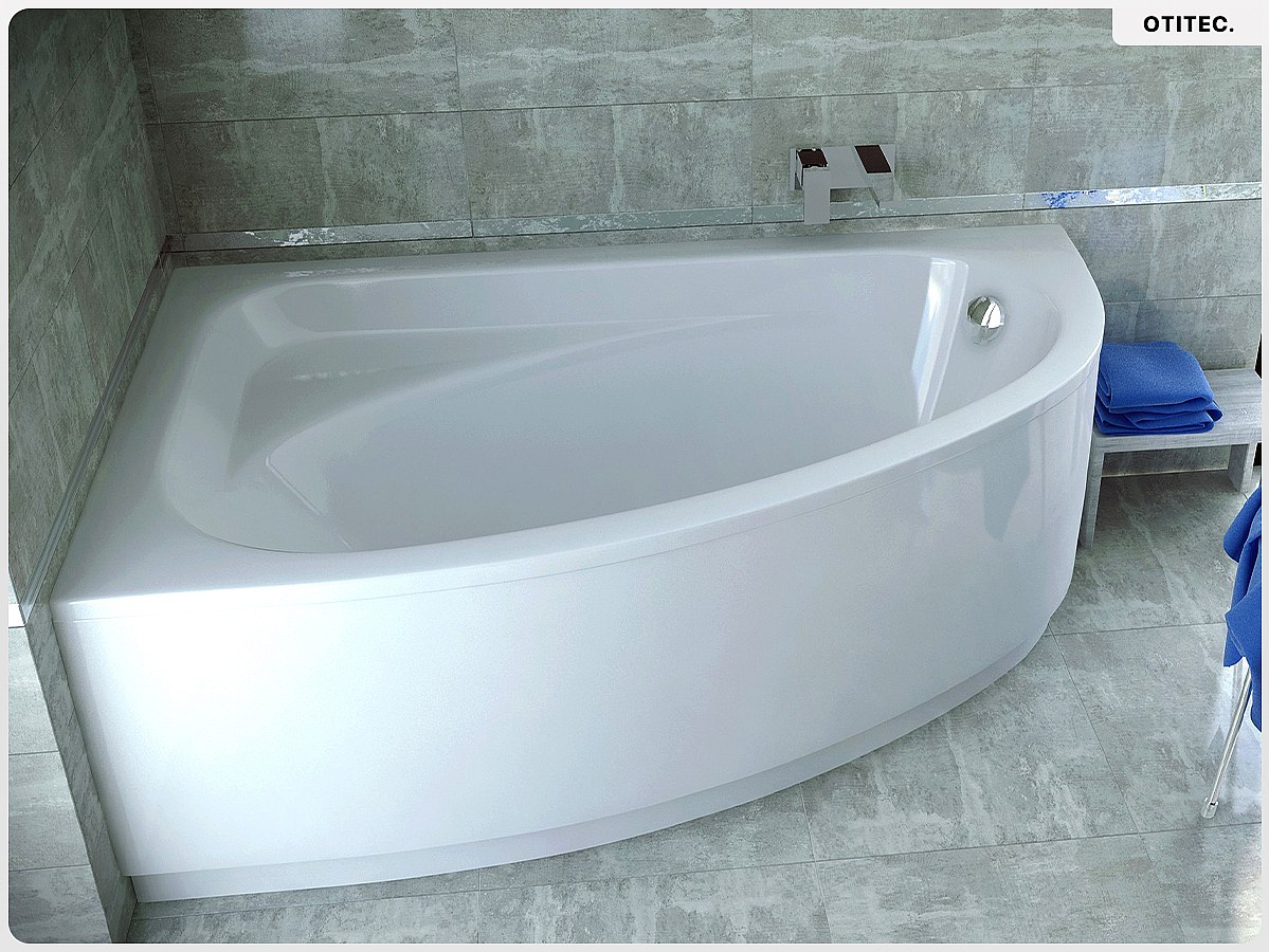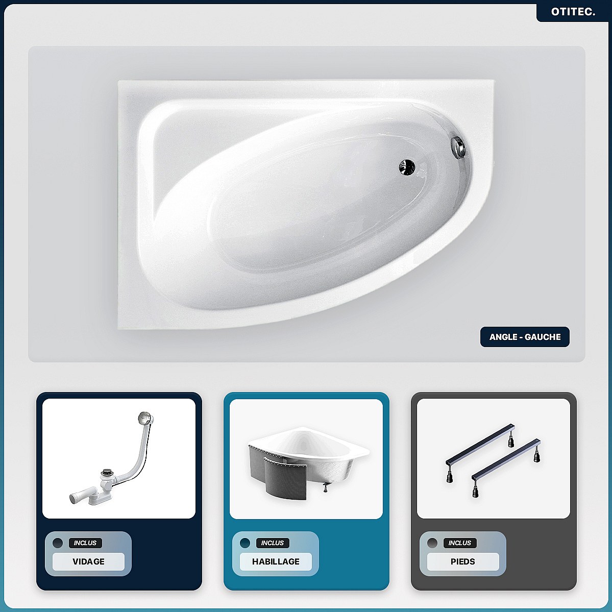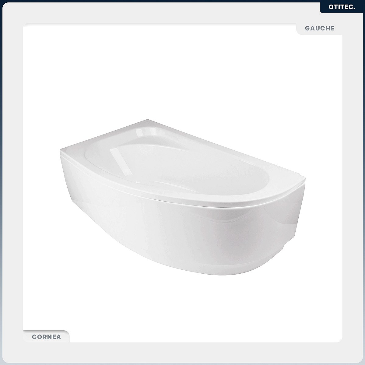 Baignoire asymétrique - 150 x 100 cm - Gauche - avec Habillage - Pieds - Vidage Chrome - CORNEA