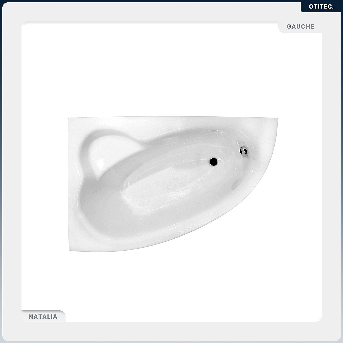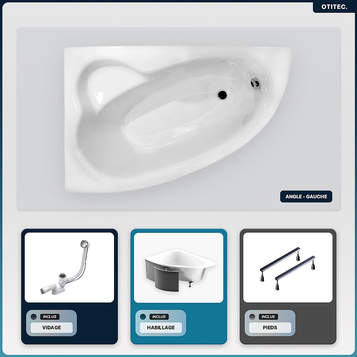 Baignoire asymétrique - 150 x 100 cm - Gauche - avec Habillage - Pieds - Vidage Chrome - NATALIA