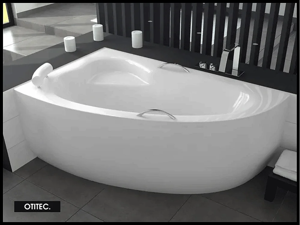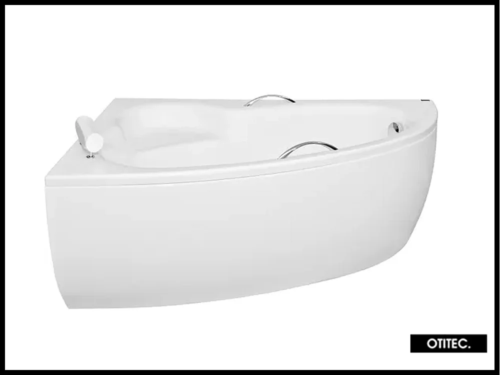 Baignoire asymétrique - 150 x 100 cm - GAUCHE - NATALIA PREMIUM - Tablier Blanc - avec SIPHON CHROMÉ OFFERT