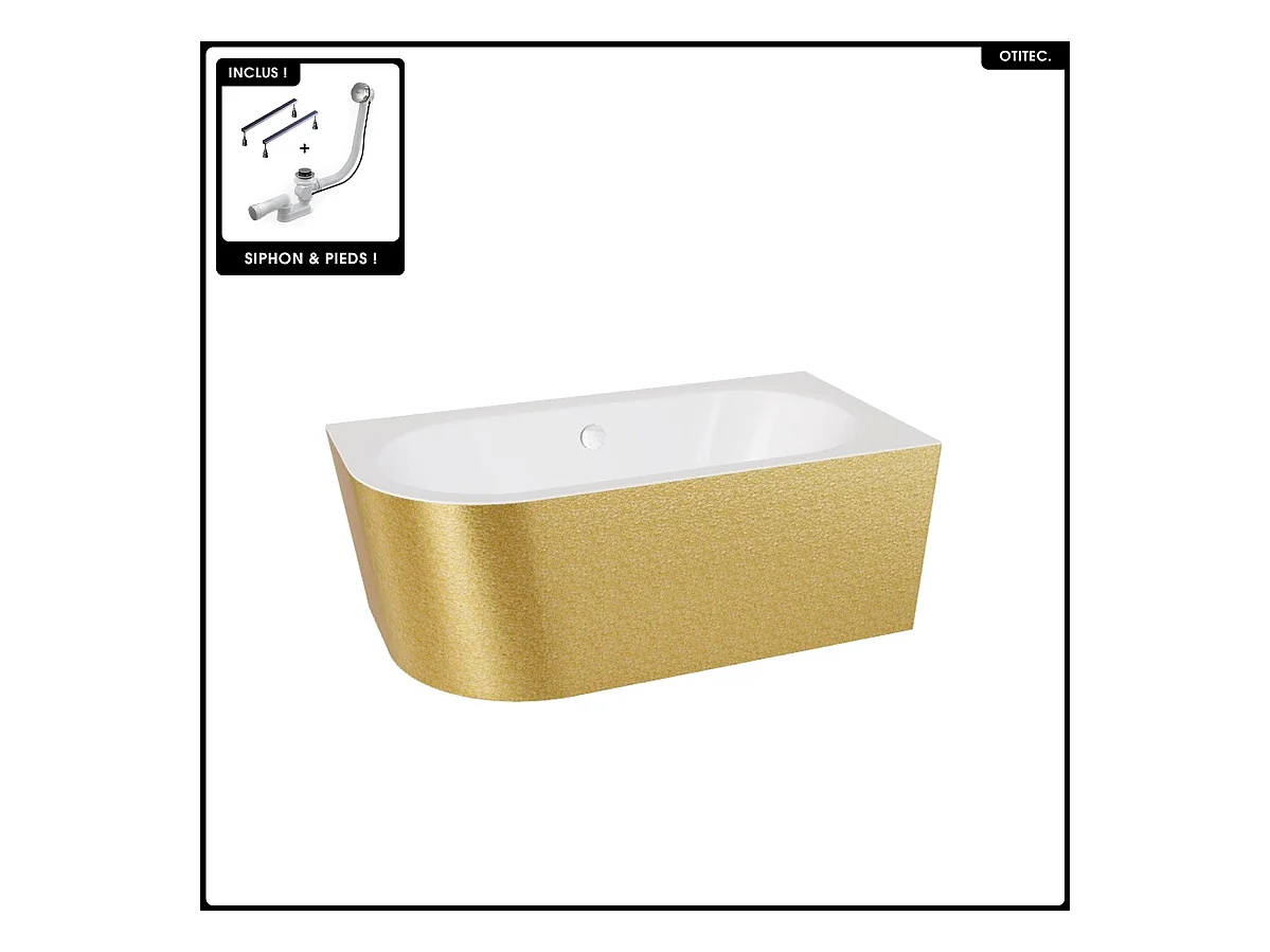 Baignoire asymétrique - 150 x 75 cm - Droite - Siphon Chrome & Pieds - INCLUS - DORÉ - AVITA GLAM