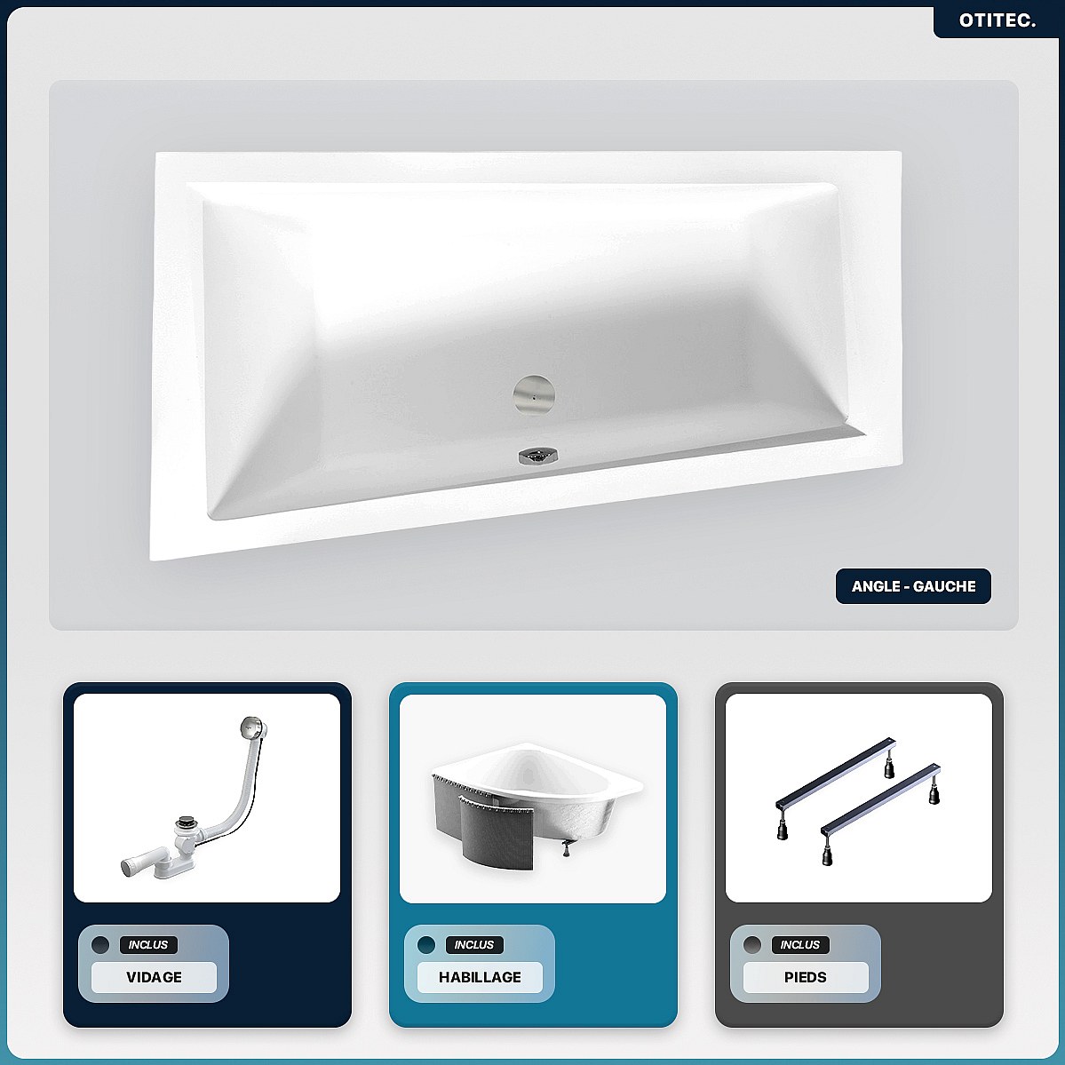 Baignoire asymétrique - 150 x 85 cm - Gauche - avec Habillage - Pieds - Vidage Chrome - INTIMA
