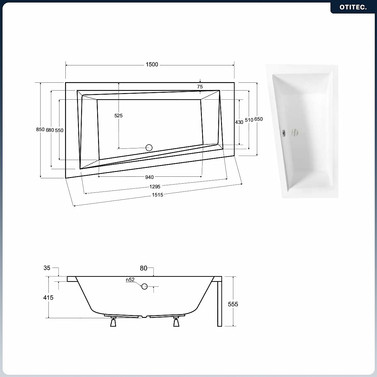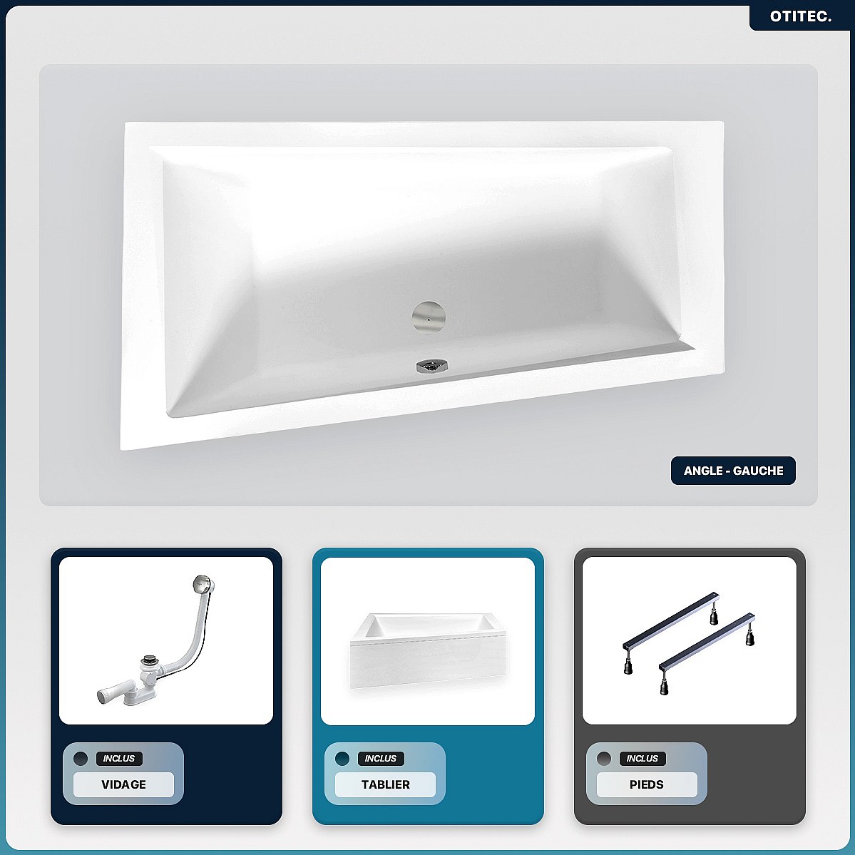 Baignoire asymétrique - 150 x 85 cm - Gauche - avec Tablier - Pieds - Vidage Chrome - INTIMA