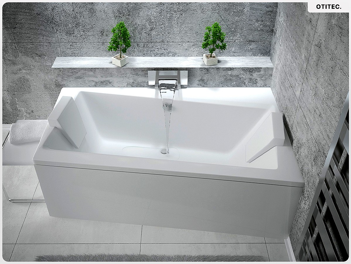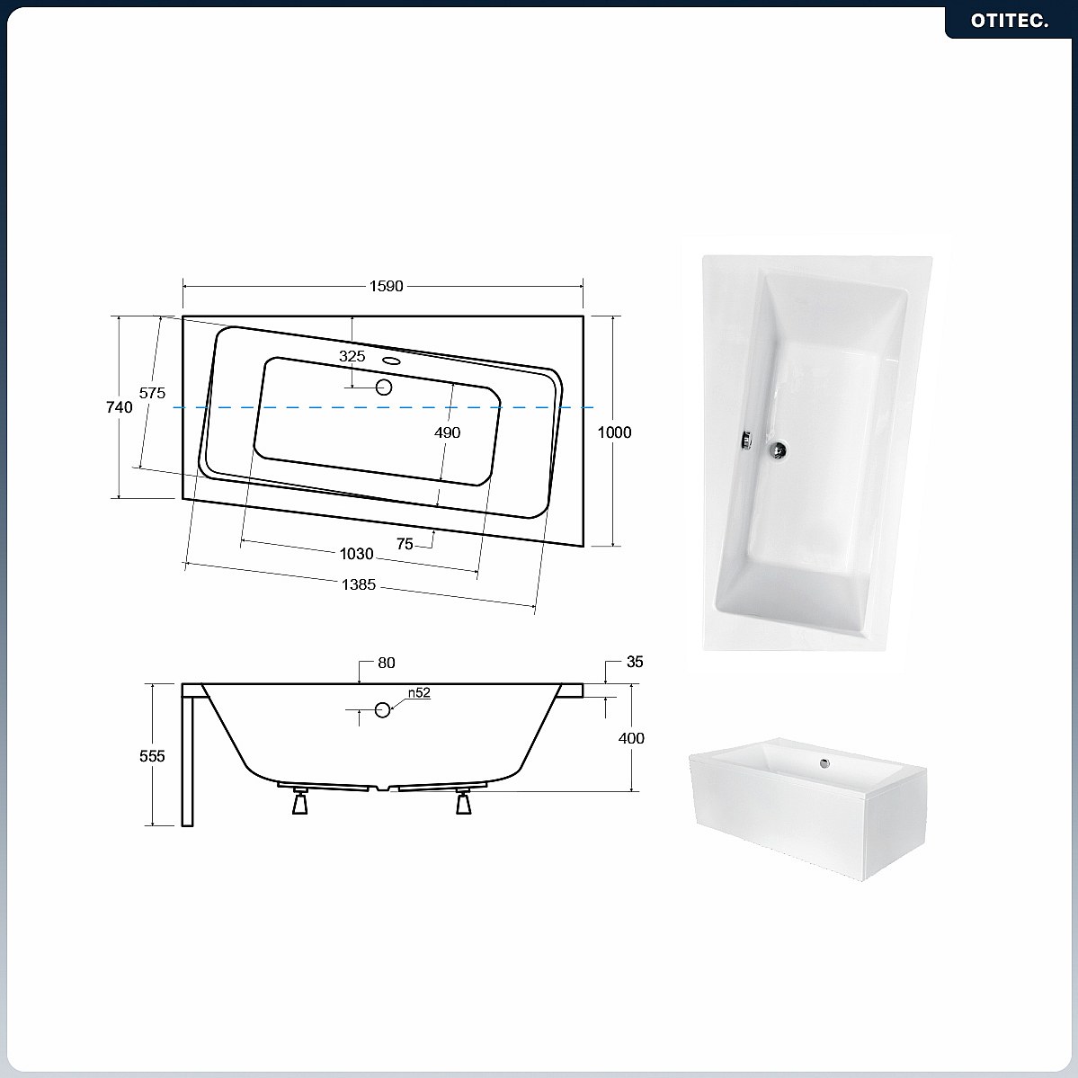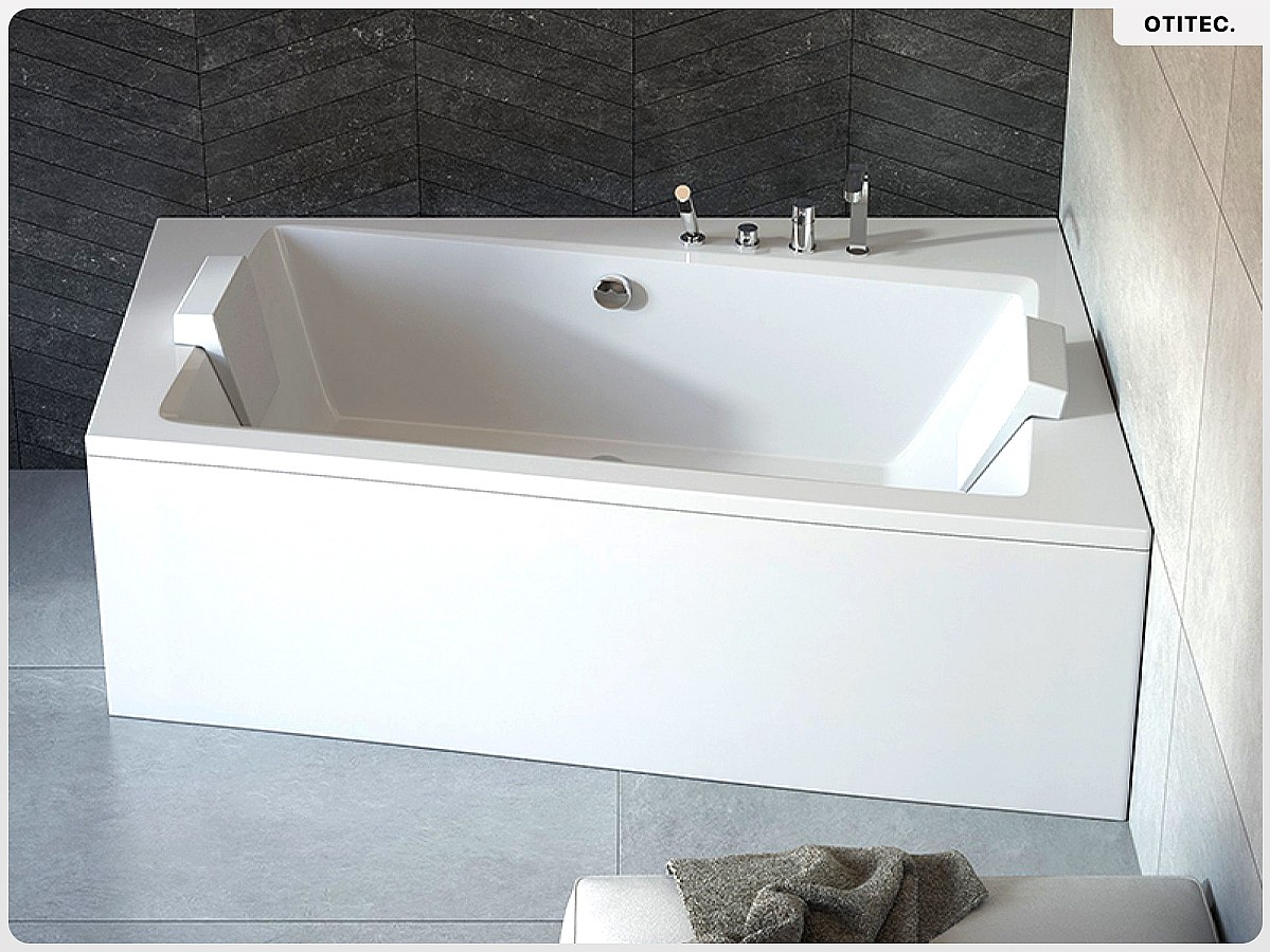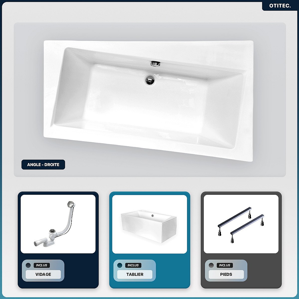 Baignoire asymétrique - 160 x 100 cm - Droite - avec Tablier Blanc - Pieds - Vidage Chrome - INFINITY