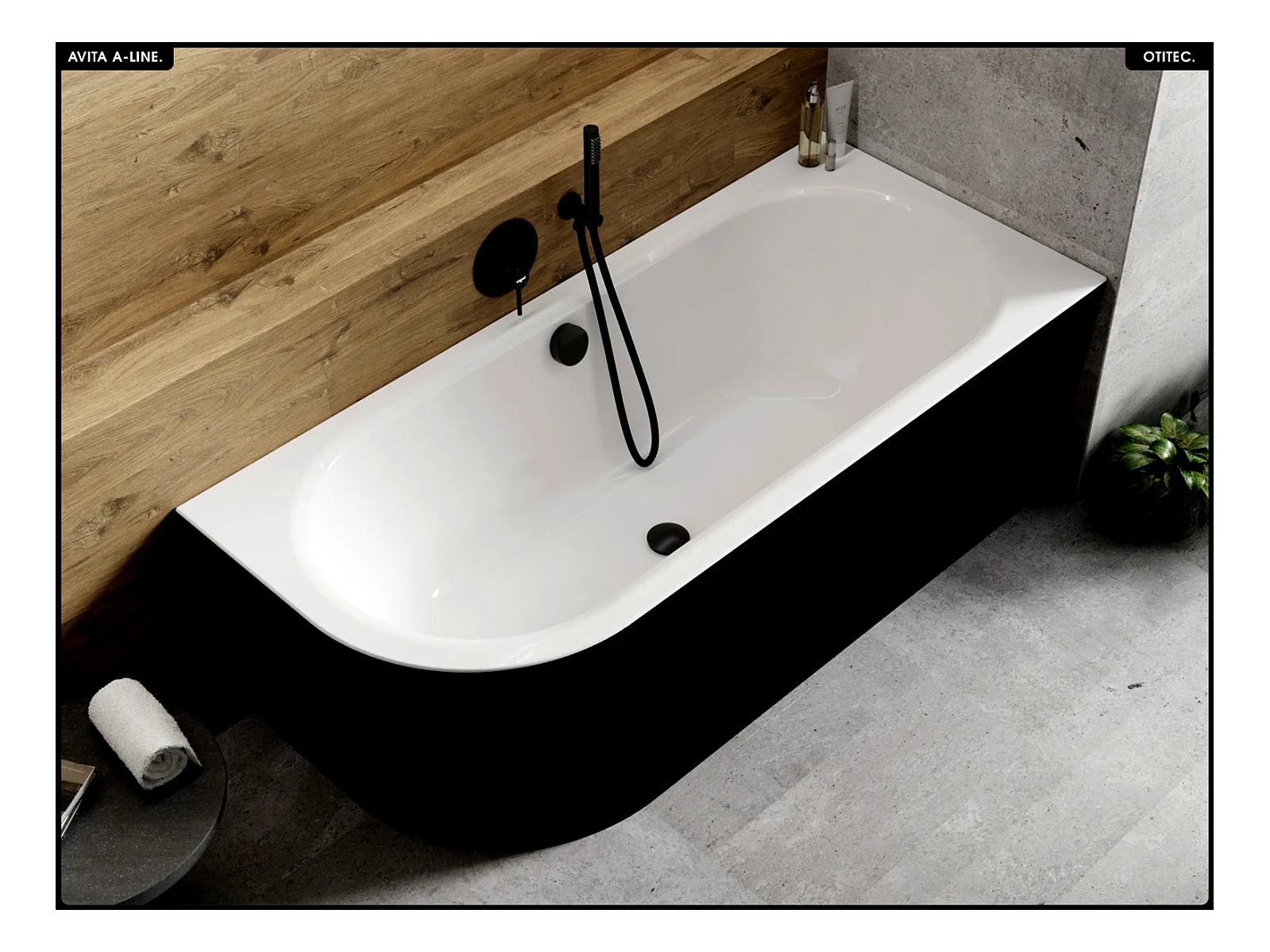 Baignoire asymétrique - 160 x 75 cm - Droite - Siphon Doré & Pieds - INCLUS - NOIR - AVITA A-LINE