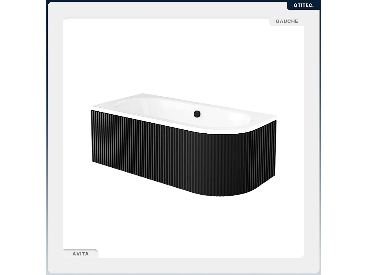 Baignoire asymétrique - 160 x 75 cm - Gauche - avec Tablier Rainuré - Siphon Chrome & Pieds - INCLUS - AVITA BLACK
