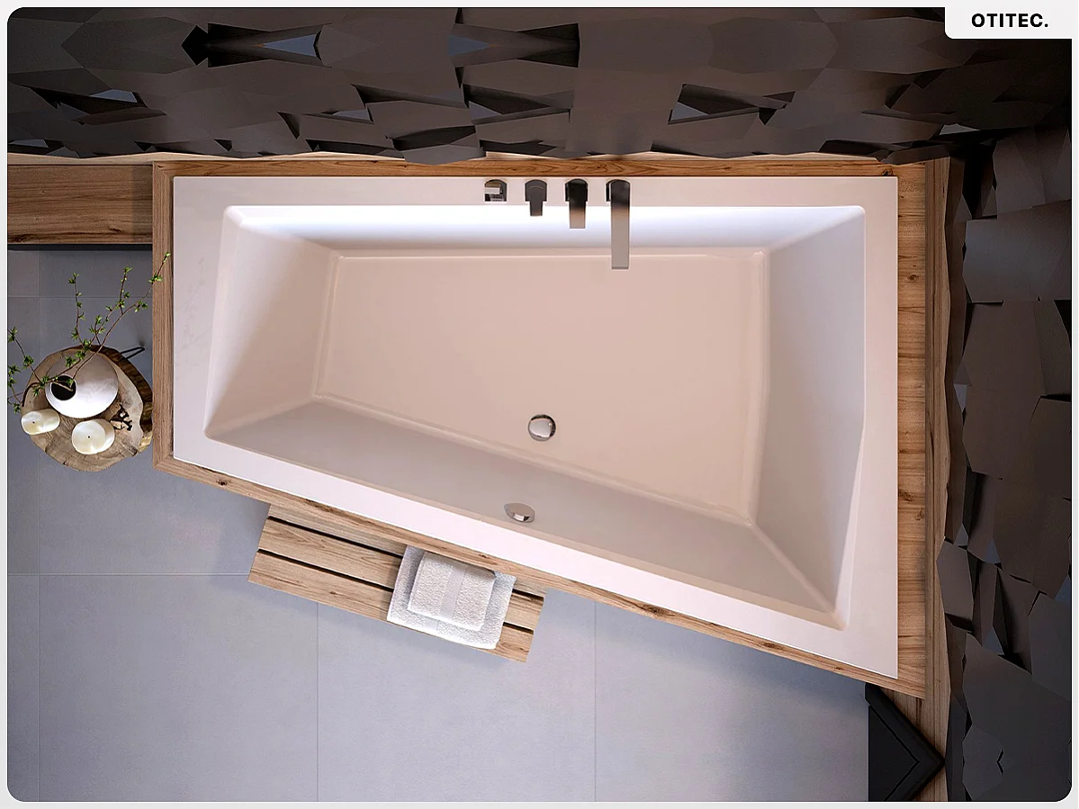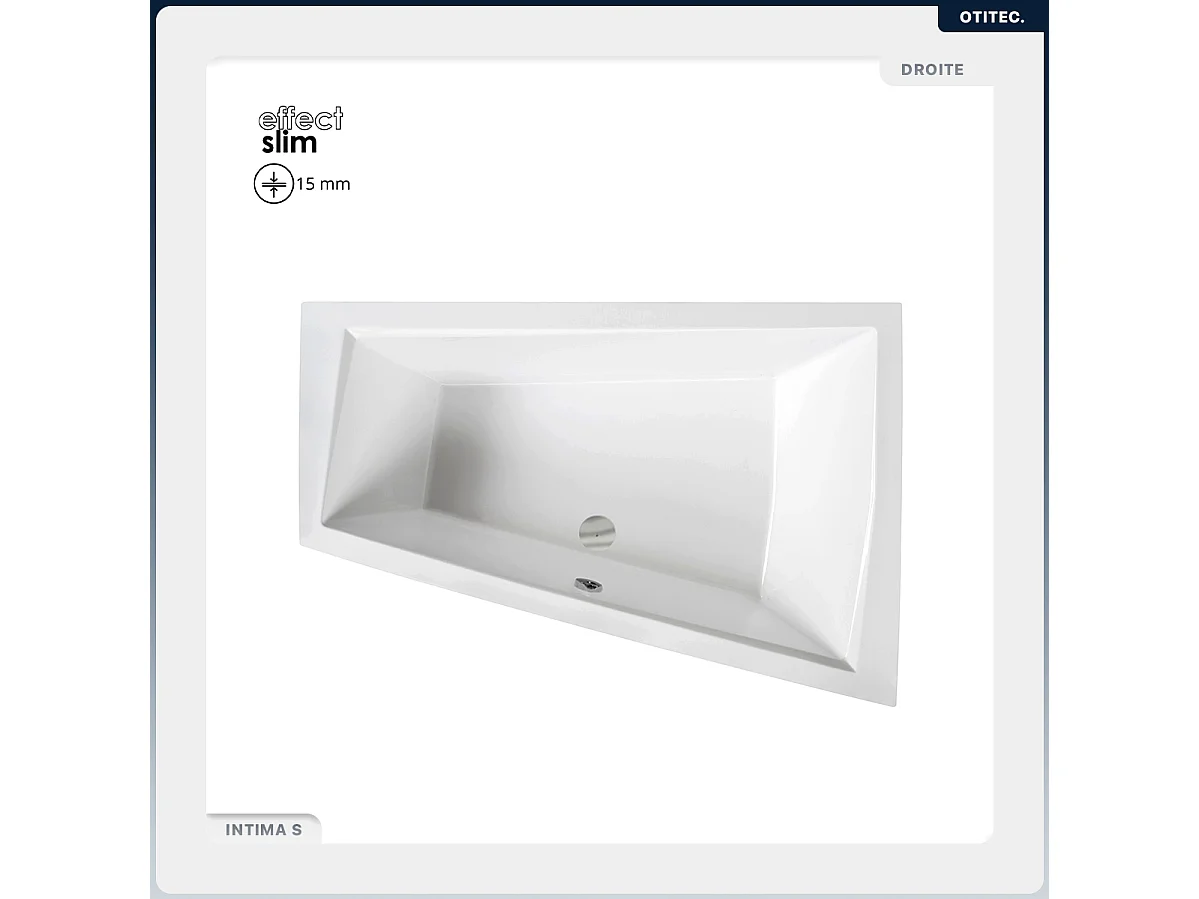 Baignoire asymétrique - 170 x 125 cm - Droite - avec Habillage - Pieds - Vidage Chrome - INTIMA DUO SLIM