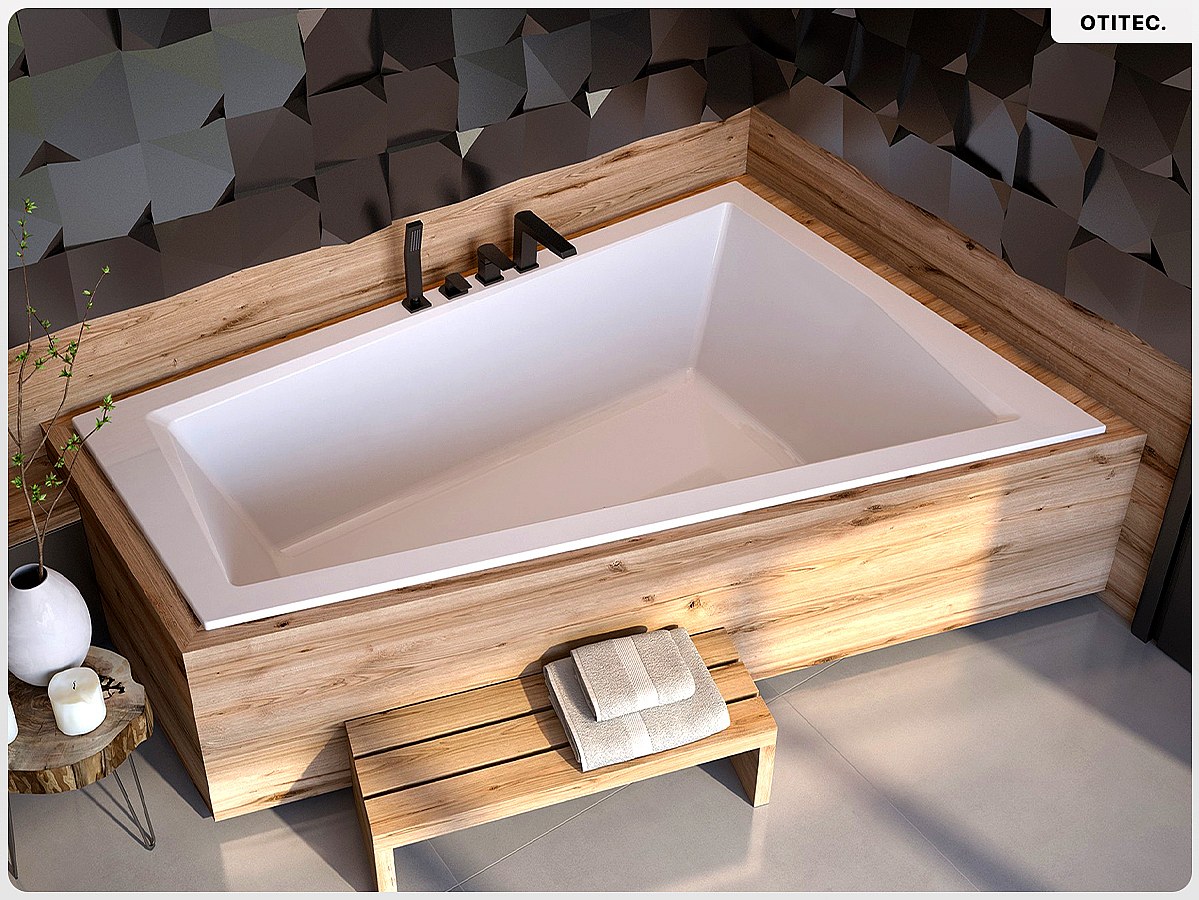 Baignoire asymétrique - 170 x 125 cm - Droite - sans Habillage - avec Pieds - Vidage Chrome - INTIMA DUO SLIM