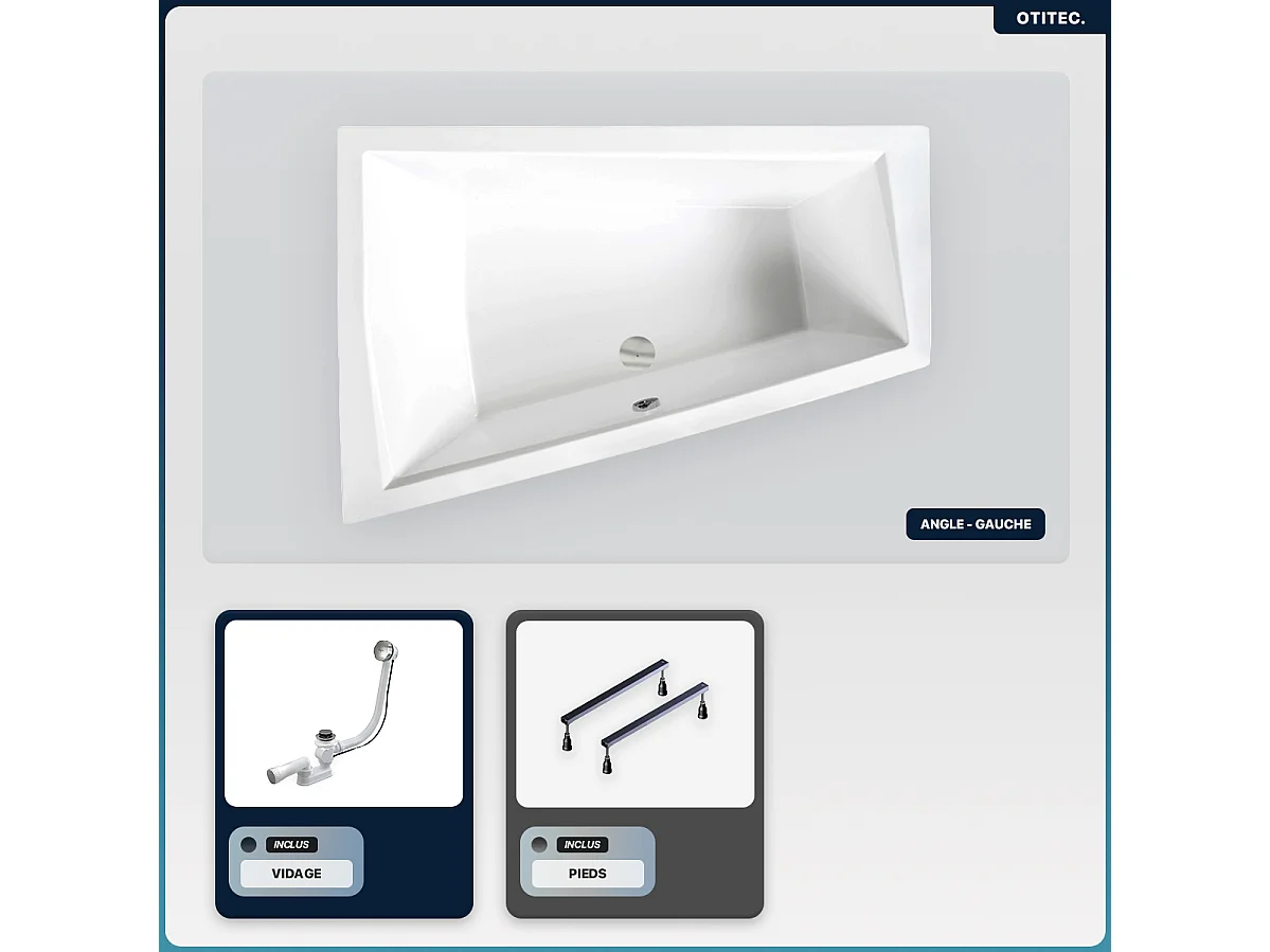 Baignoire asymétrique - 170 x 125 cm - Gauche - sans Habillage - avec Pieds - Vidage Chrome - INTIMA DUO SLIM