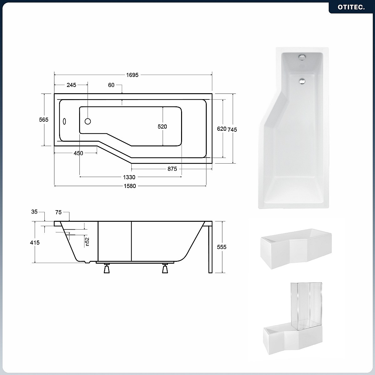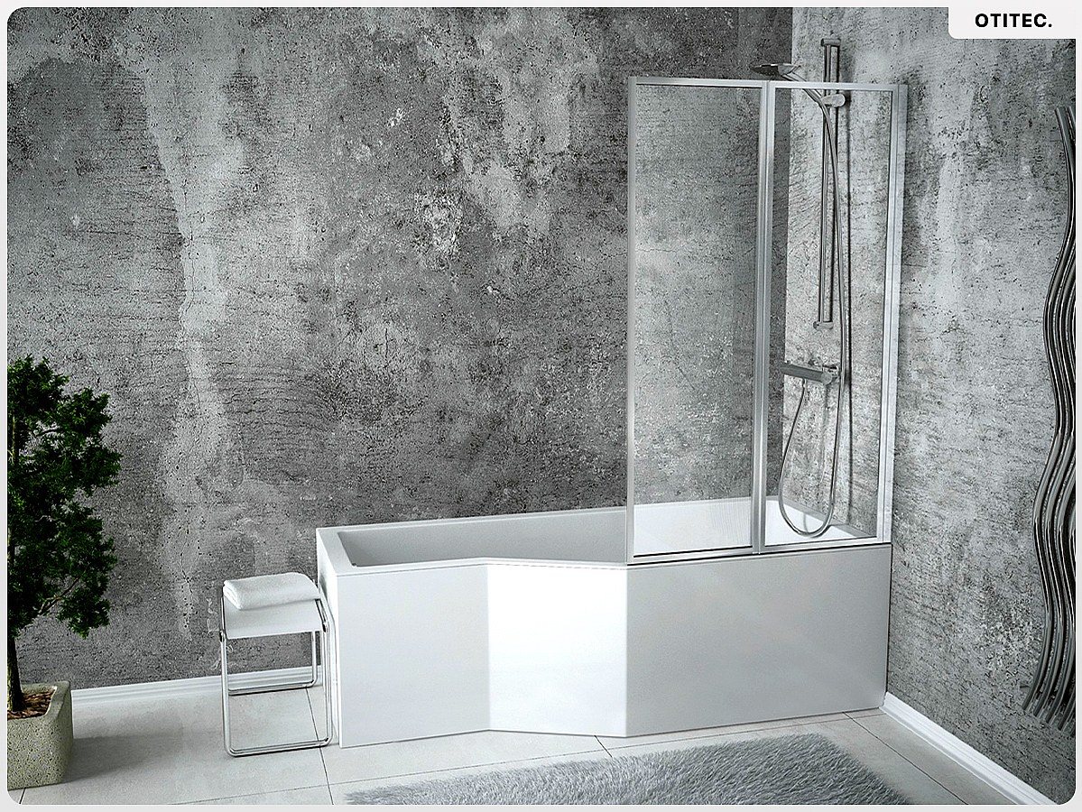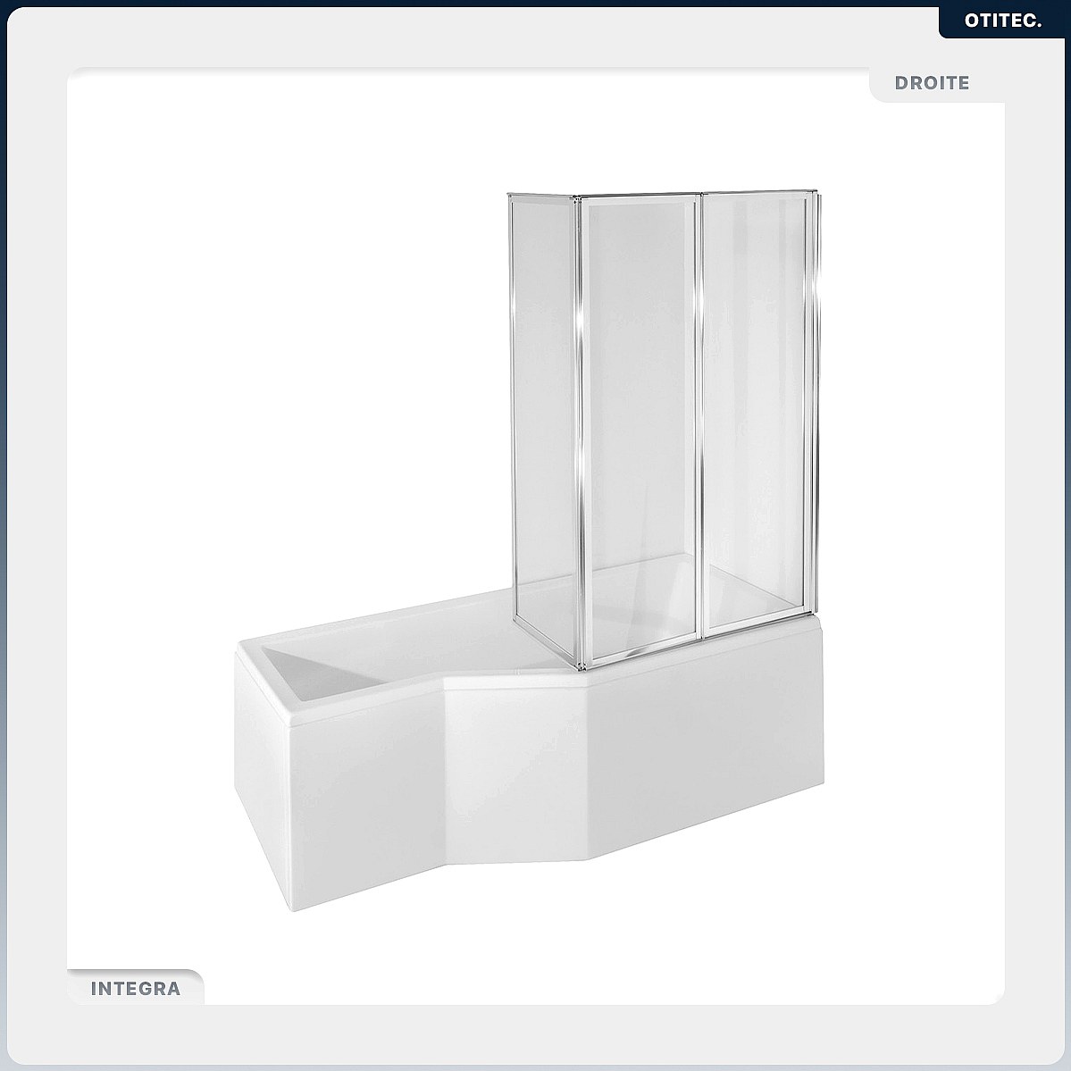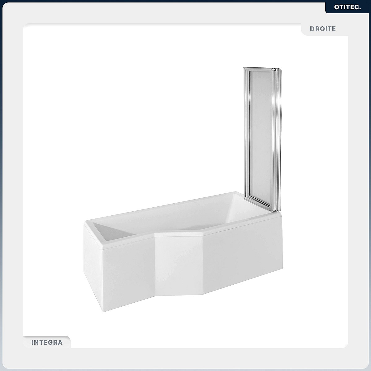 Baignoire asymétrique - 170 x 75 cm - Droite - avec Tablier - Pieds - Pare Baignoire 3 Volets - Vidage Chrome - INTEGRA
