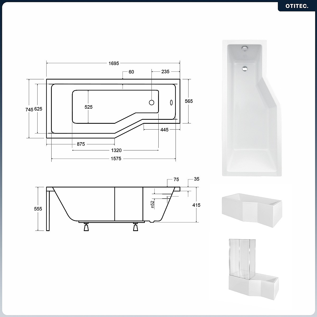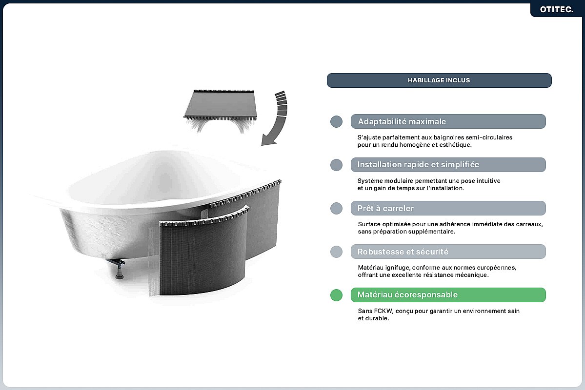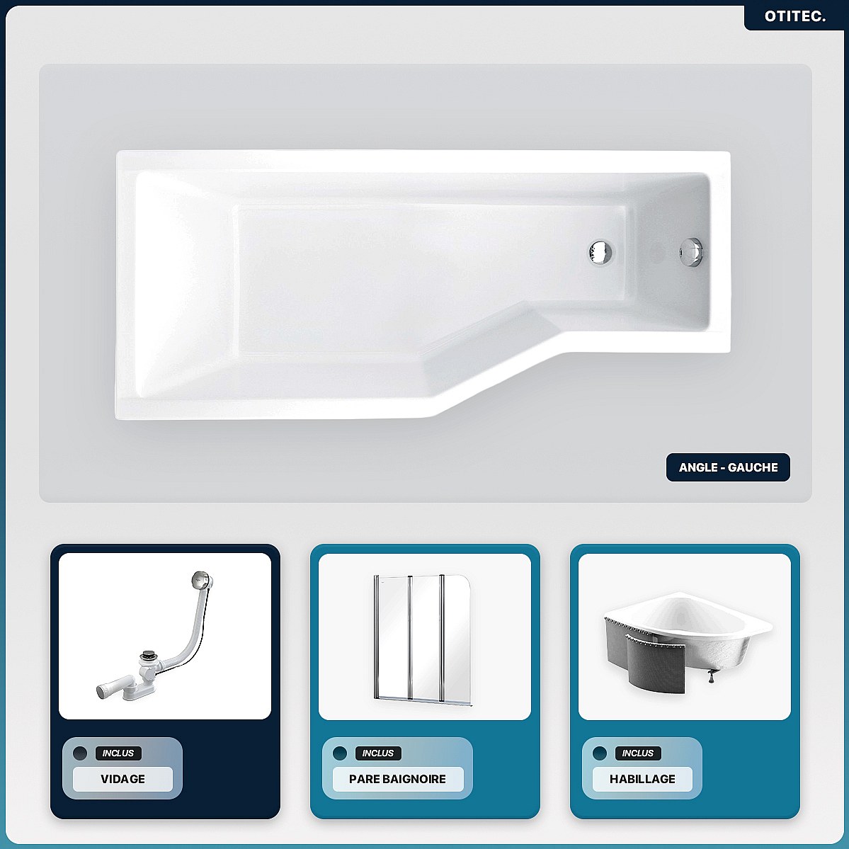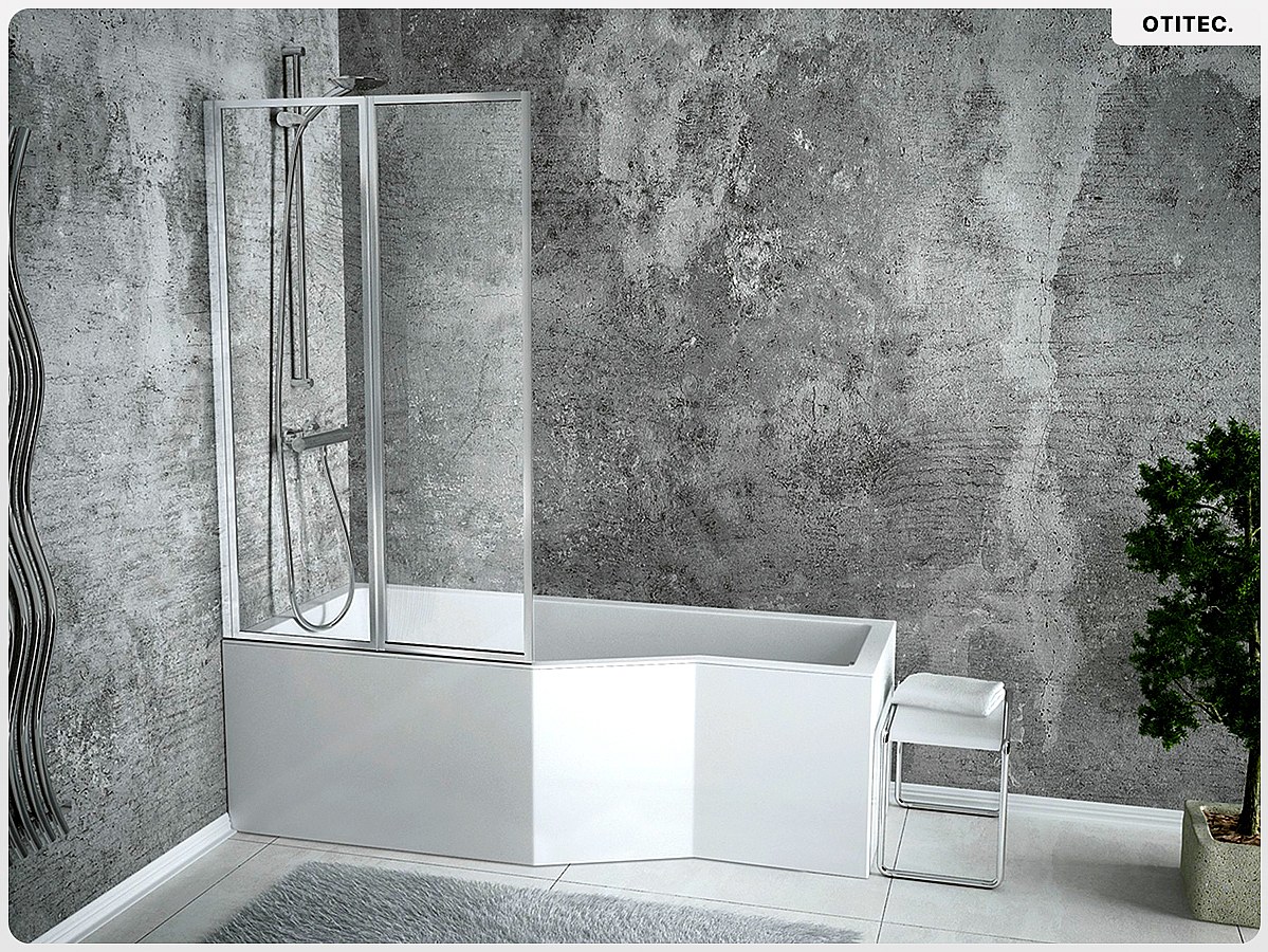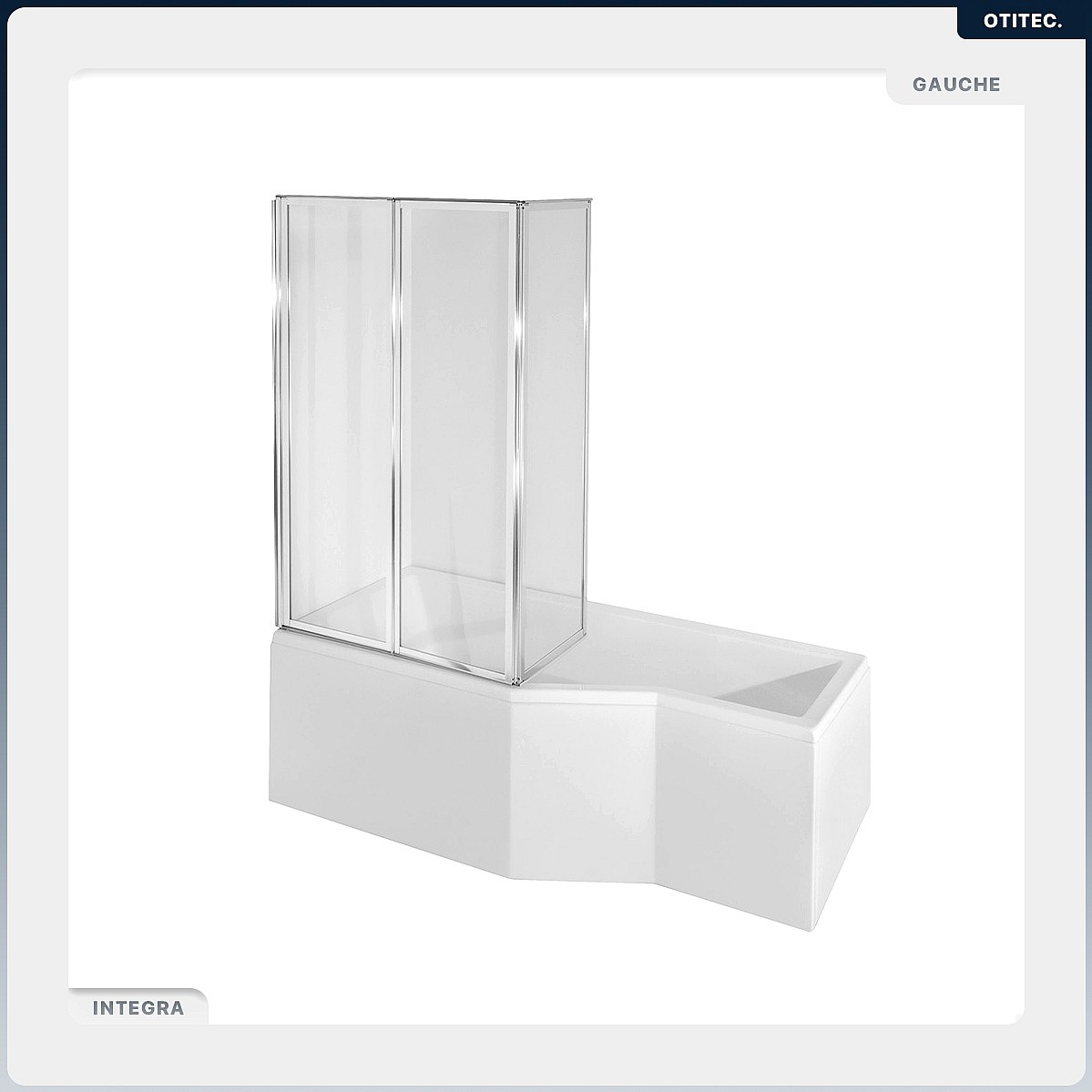Baignoire asymétrique - 170 x 75 cm - Gauche - avec Habillage - Pieds - Pare Baignoire 3 Volets - Vidage Chrome - INTEGRA