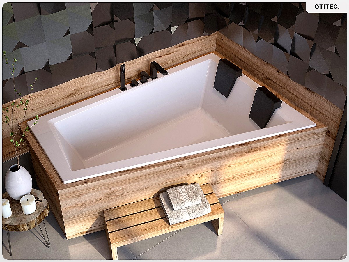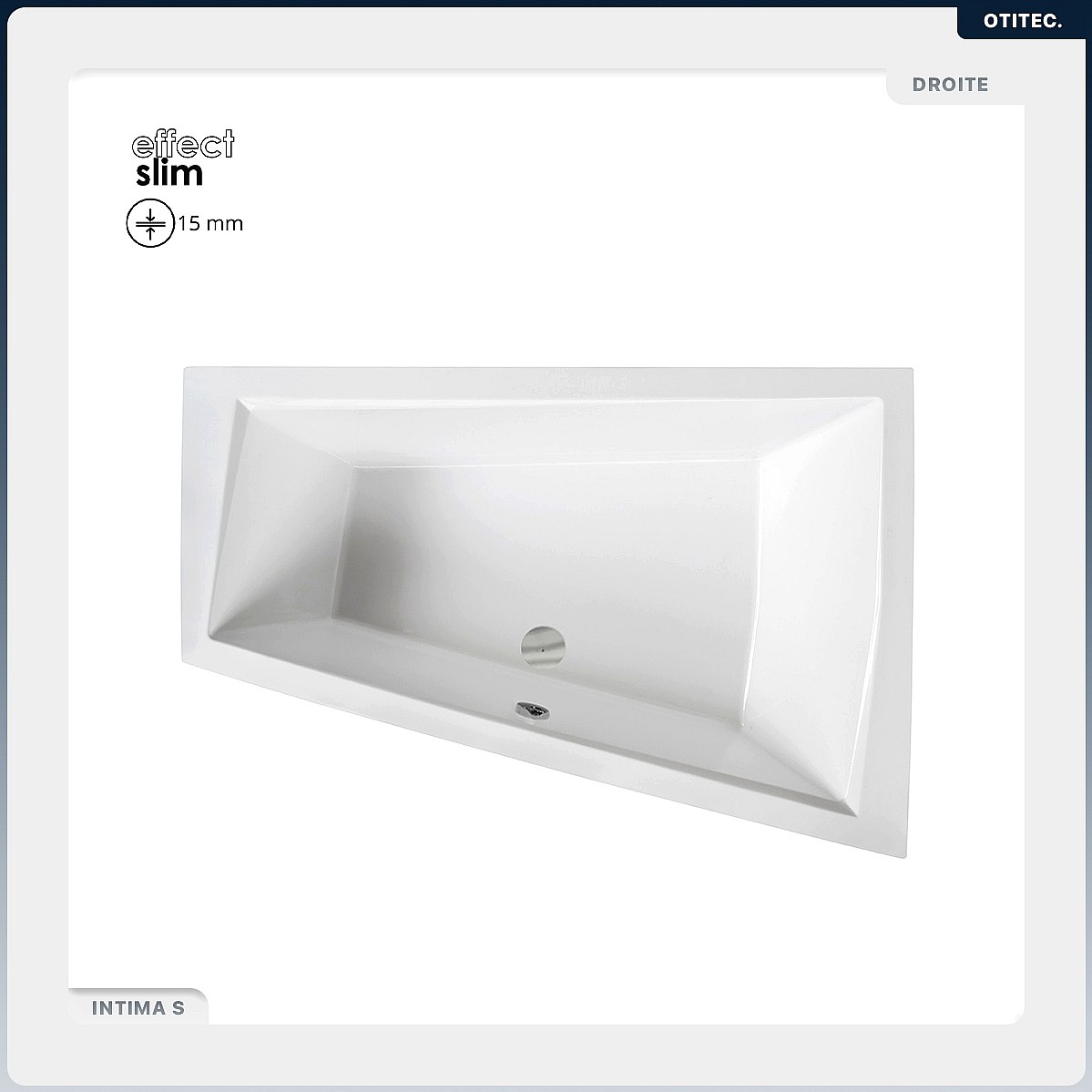 Baignoire asymétrique - 180 x 125 cm - Droite - avec Habillage - Pieds - 2 Repose-têtes - Vidage Chrome - INTIMA DUO SLIM