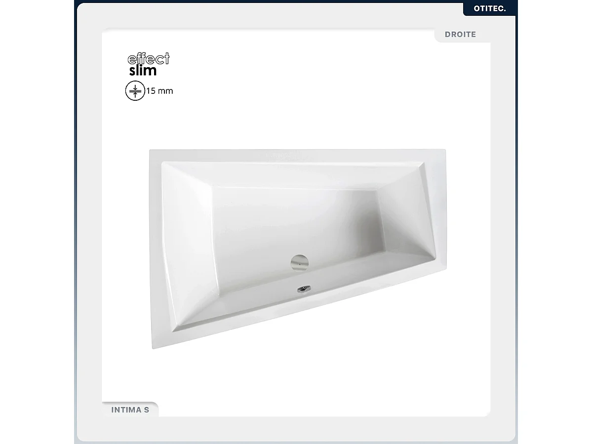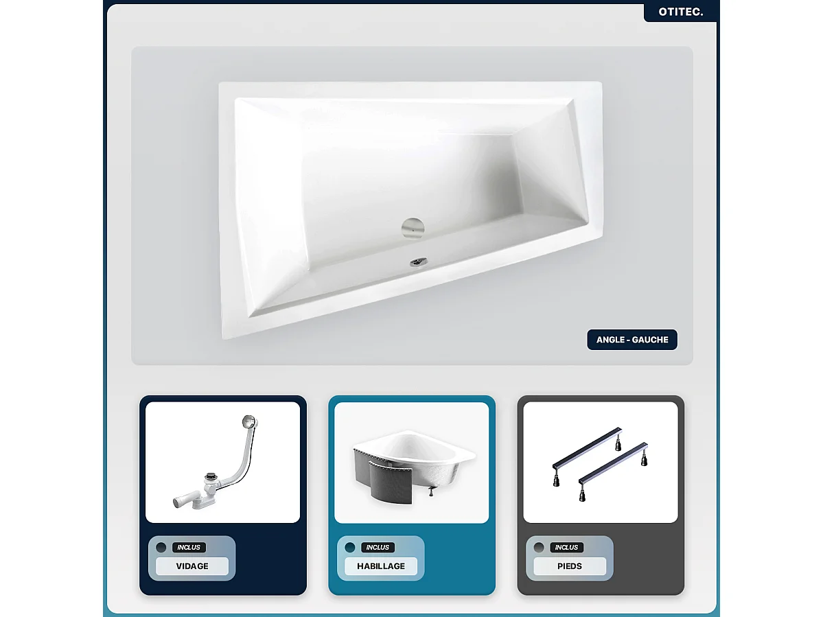 Baignoire asymétrique - 180 x 125 cm - Gauche - avec Habillage - Pieds - Vidage Chrome - INTIMA DUO SLIM