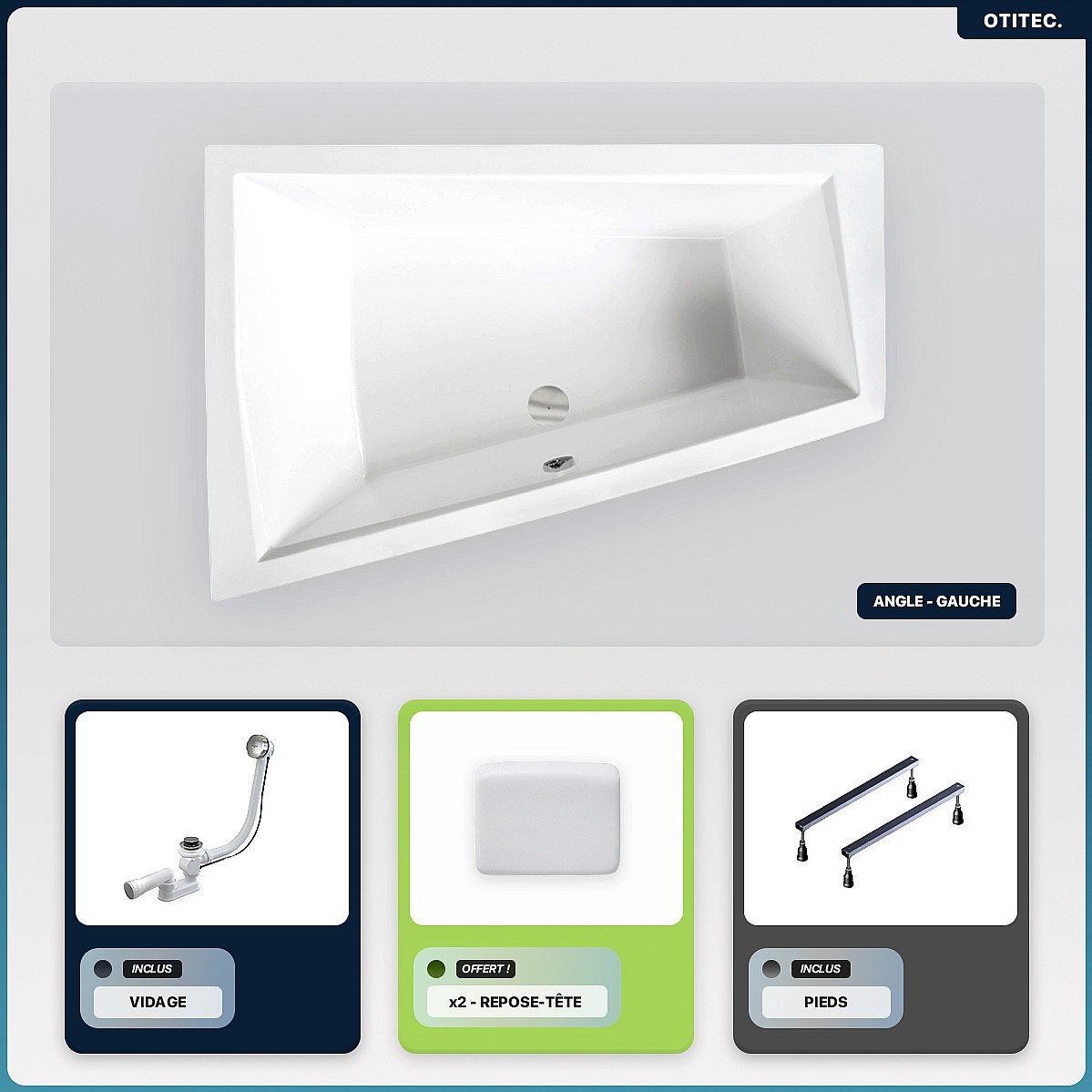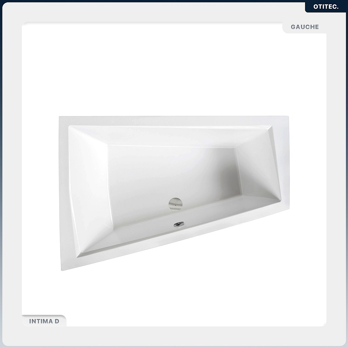 Baignoire asymétrique - 180 x 125 cm - Gauche - sans Habillage - avec Pieds - 2 Repose-têtes - Vidage Chrome - INTIMA DUO