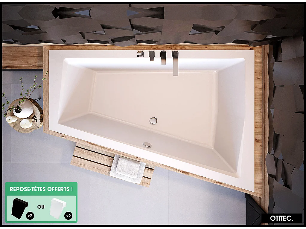 Baignoire Asymétrique à Encastrer - 170 x 125 cm - DROITE - INTIMA DUO SLIM - 2 REPOSE-TÊTES OFFERTS