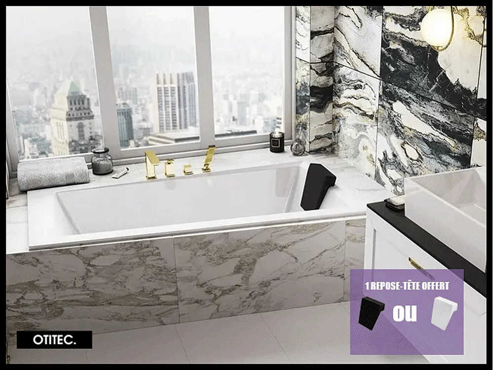 Baignoire Asymétrique sans Tablier - 160 x 90 cm - INTIMA SANS TABLIER - DROITE - avec Repose tête OFFERT