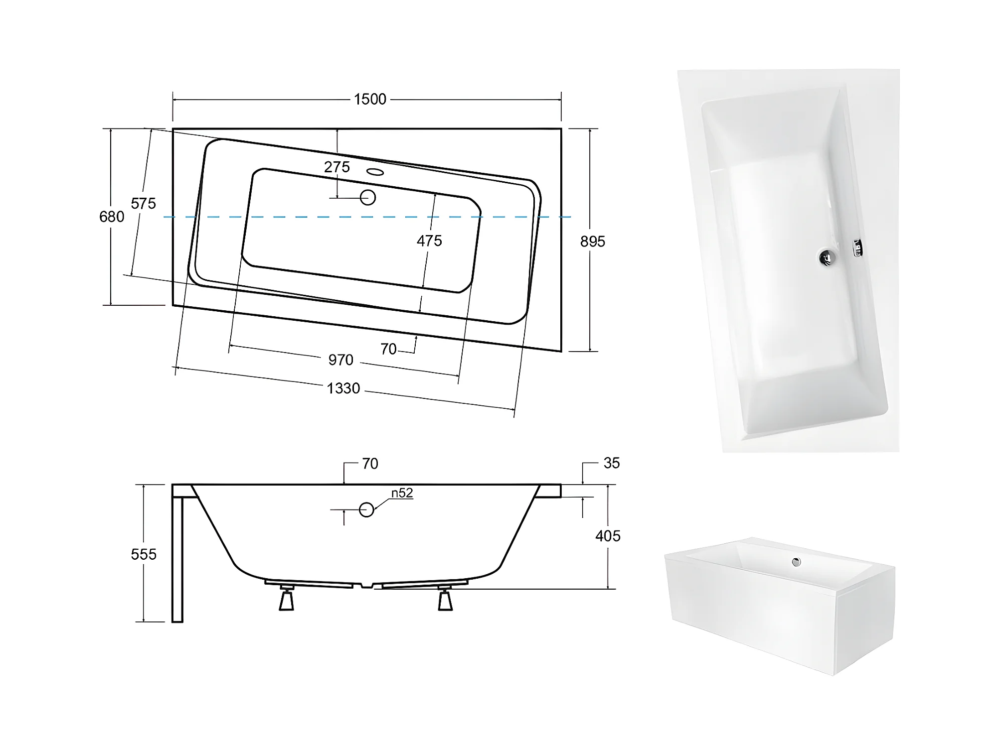 Baignoire asymétrique + tablier blanc + repose tête - INFINITY - 150 x 90 cm - Droite