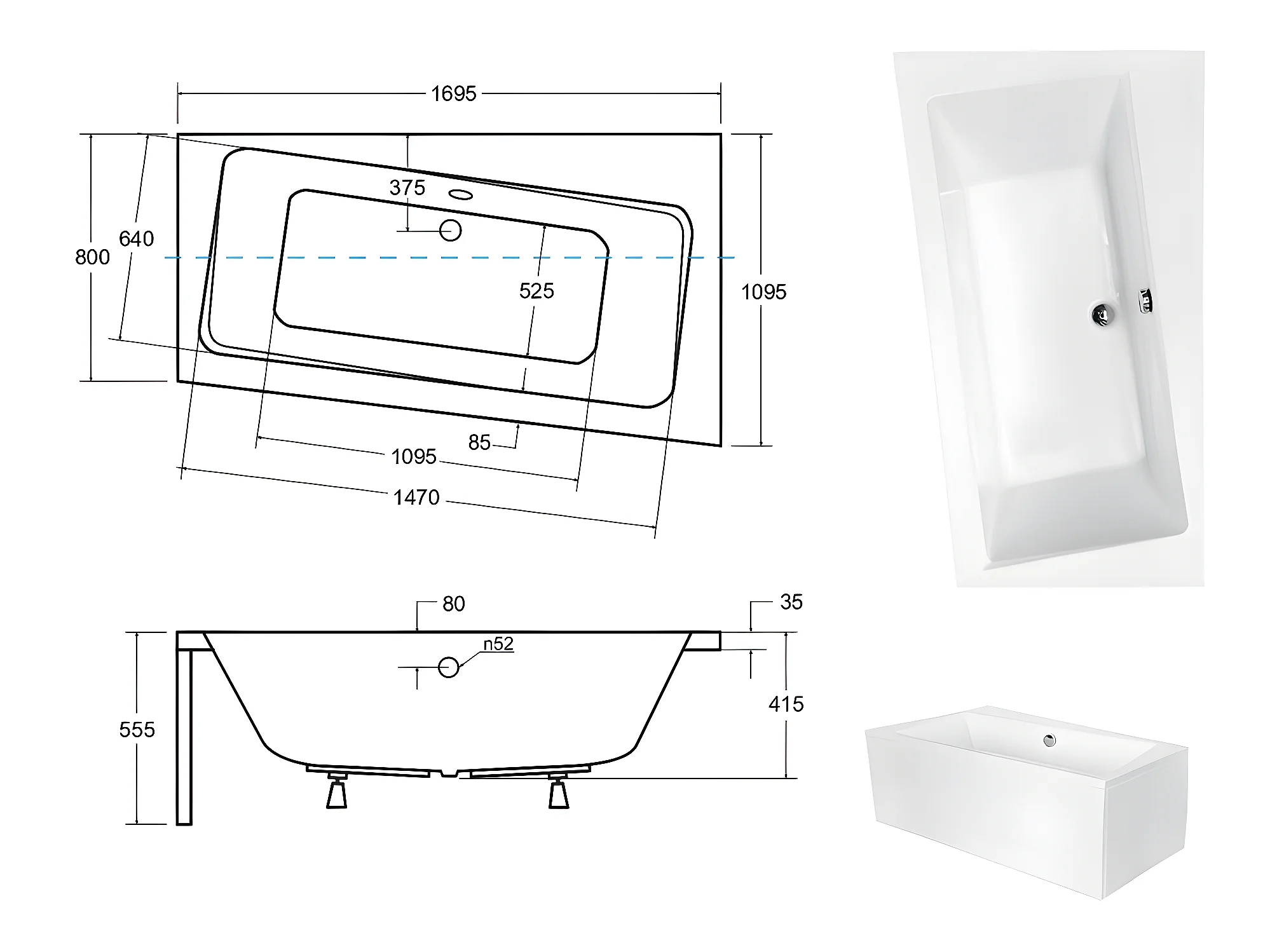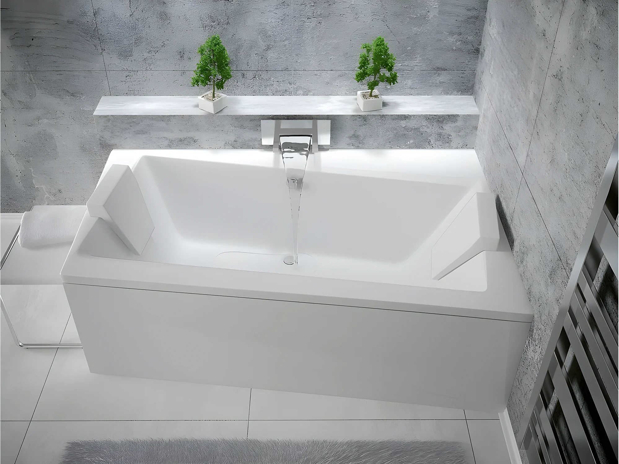 Baignoire asymétrique + tablier blanc + repose tête - INFINITY - 170 x 110 cm - Droite