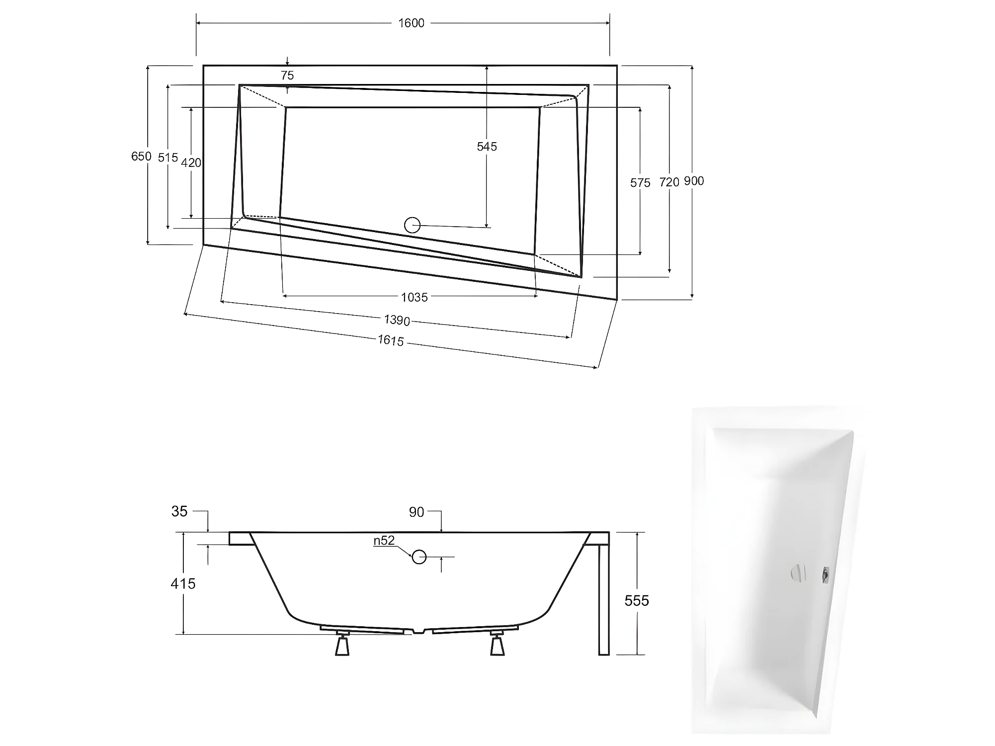 Baignoire asymétrique + tablier blanc + repose tête - INTIMA - 150 x 85 cm - Droite