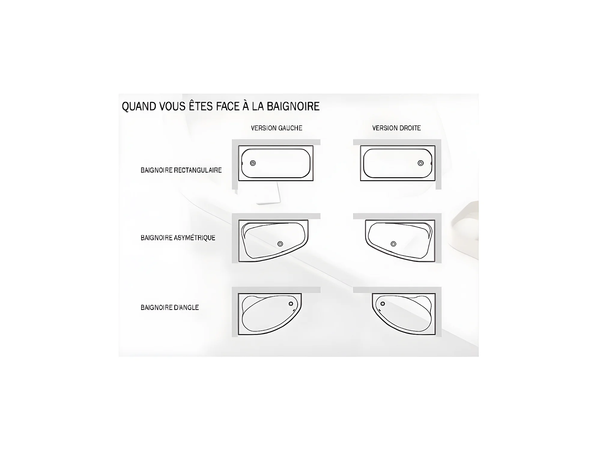 Baignoire asymétrique + tablier blanc + repose tête - PRAKTIKA - 150 x 70 cm - Droite