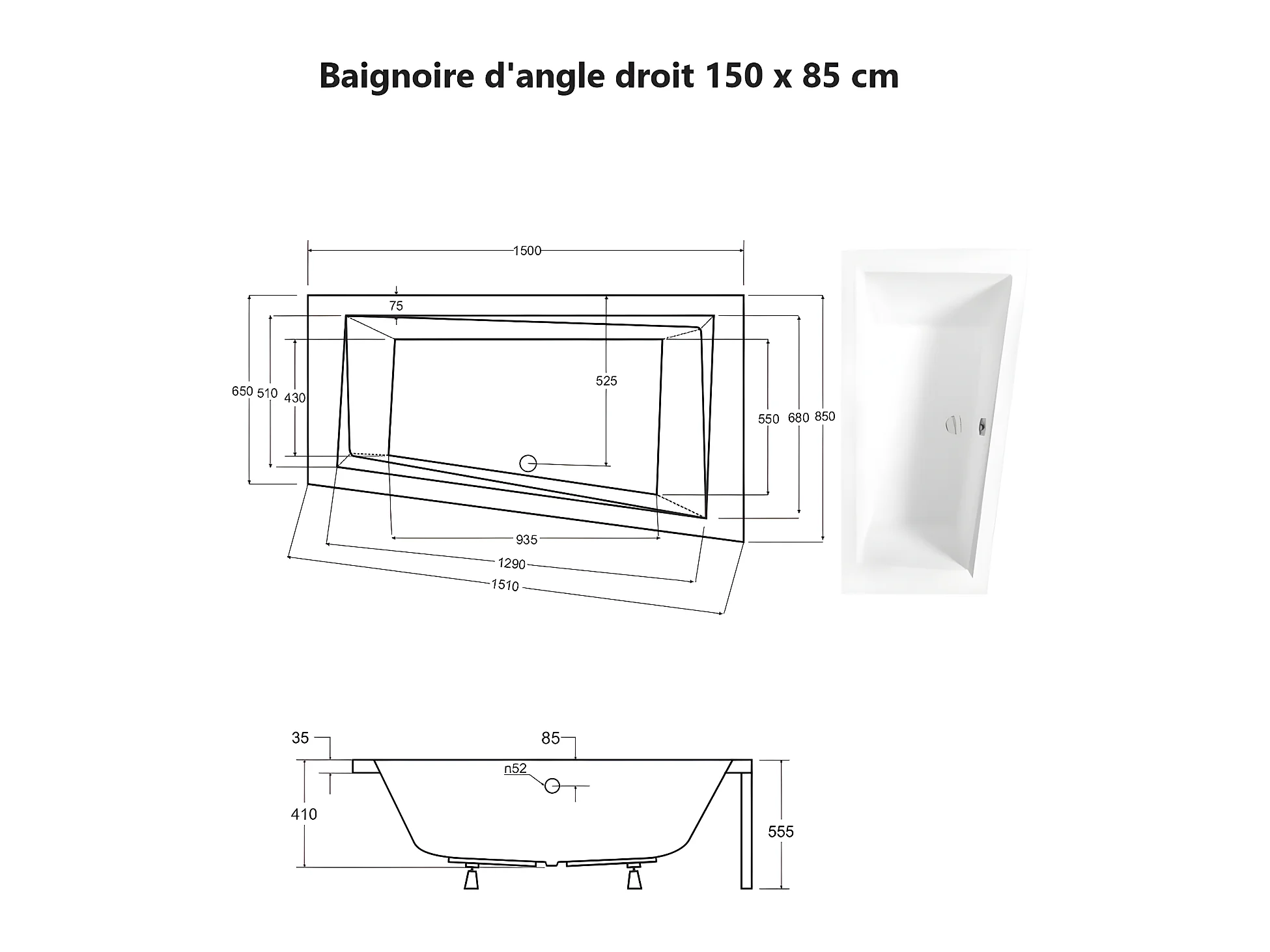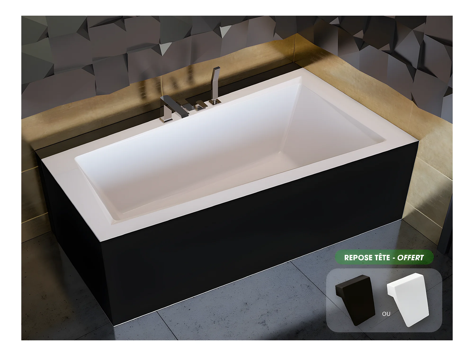 Baignoire asymétrique + tablier noir + repose tête - INTIMA - 150 x 85 cm - Droite