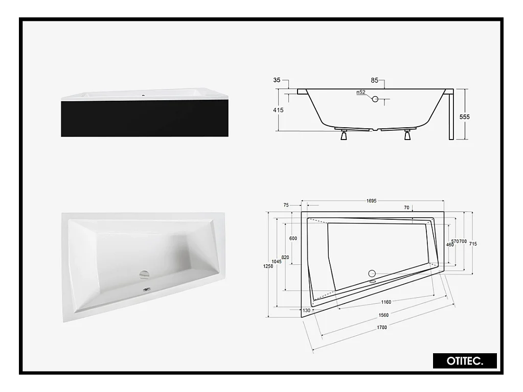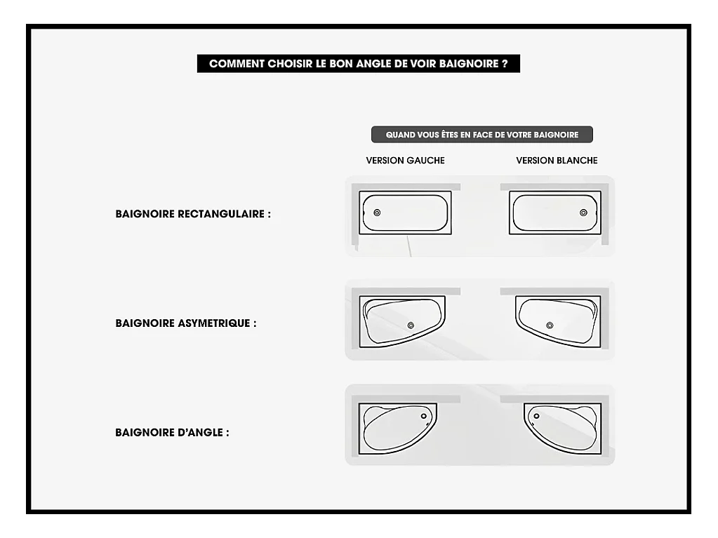 Baignoire Asymétrique avec Tablier Noir - 170 x 125 cm - GAUCHE - INTIMA DUO - 2 REPOSE-TÊTES OFFERTS