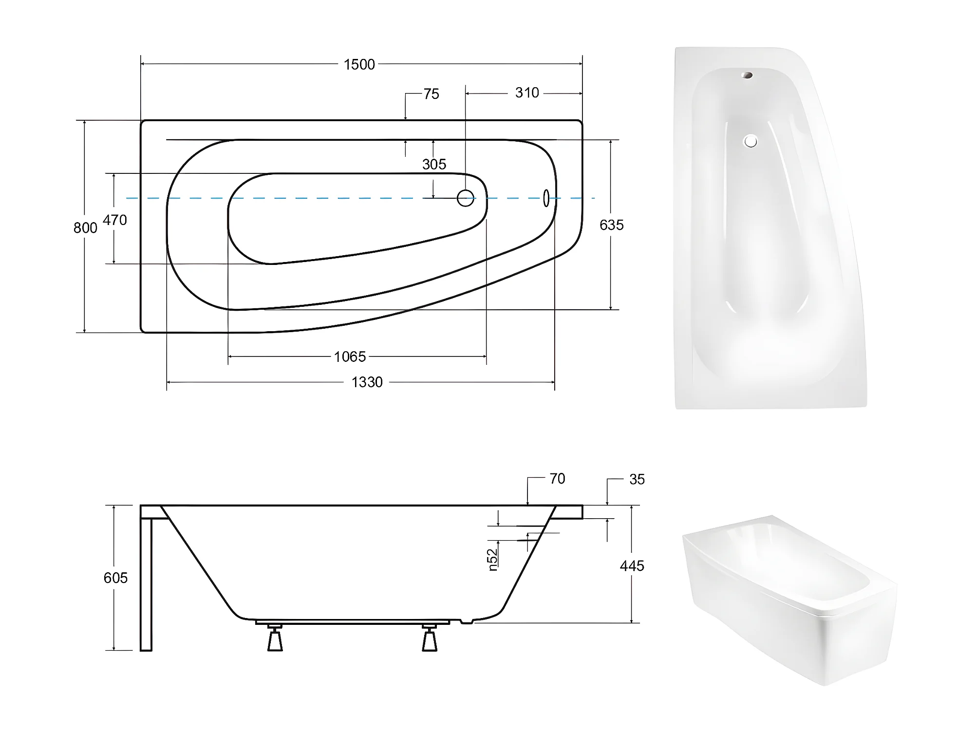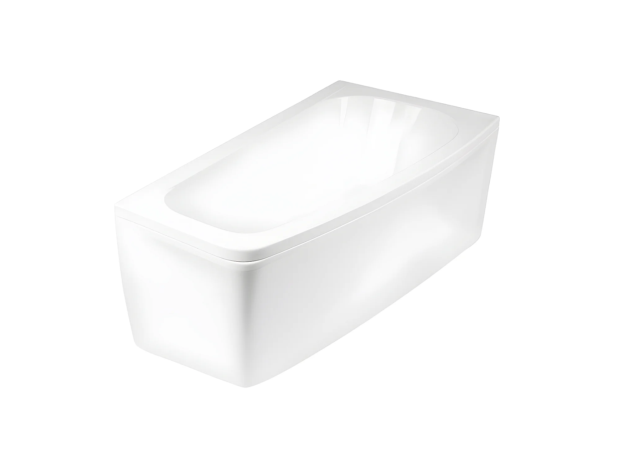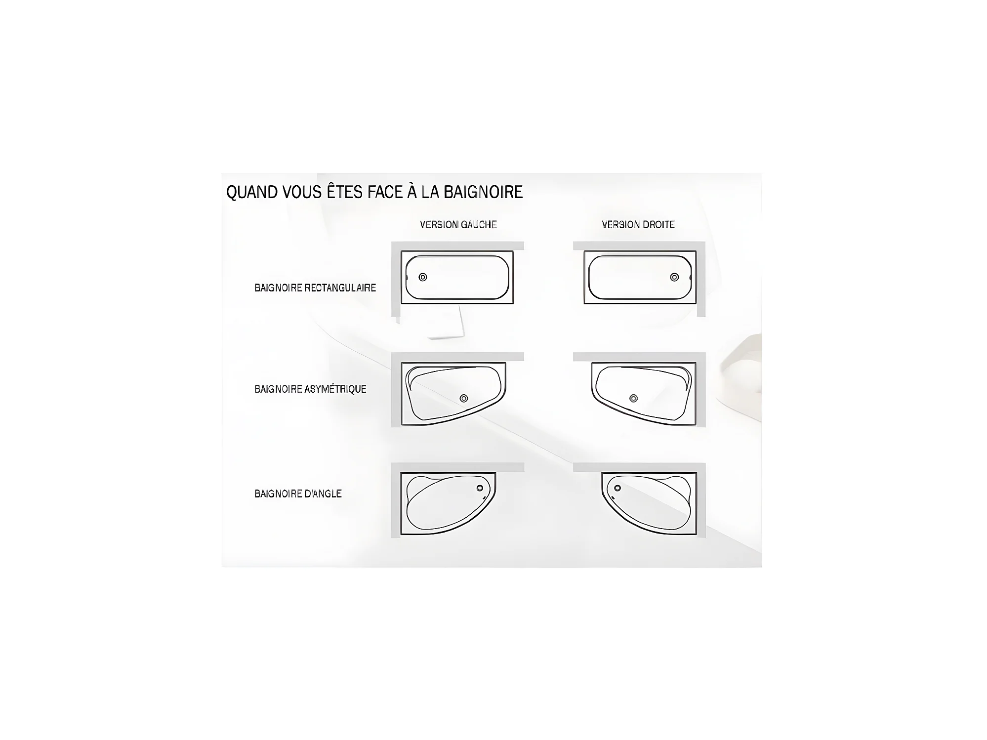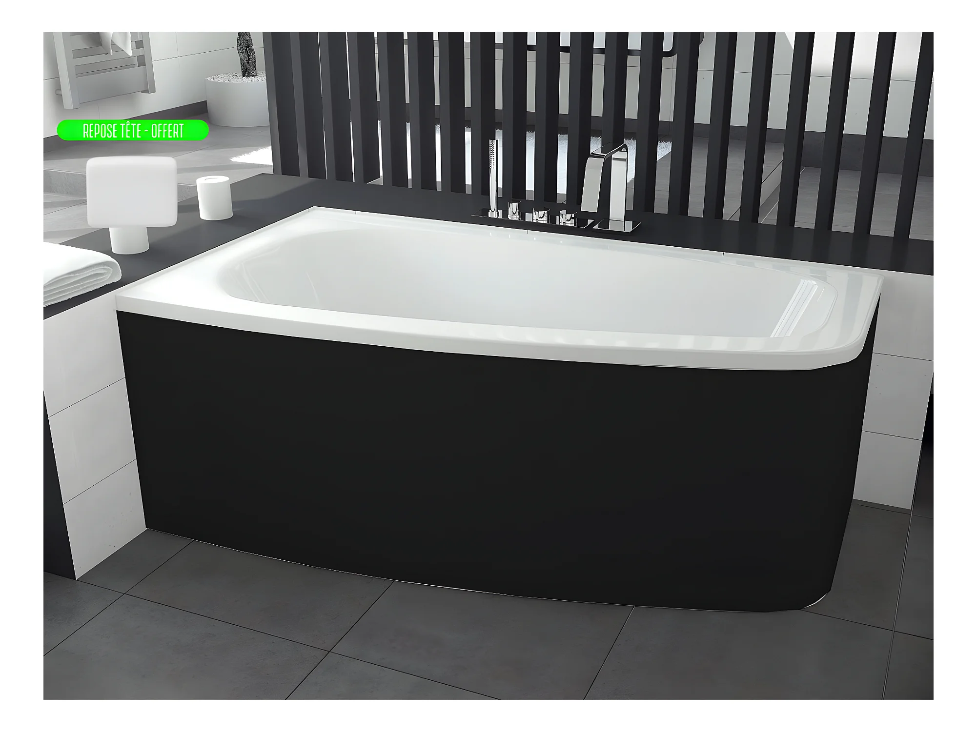 Baignoire asymétrique + tablier noir + repose tête - LUNA - 150 x 80 cm - Gauche