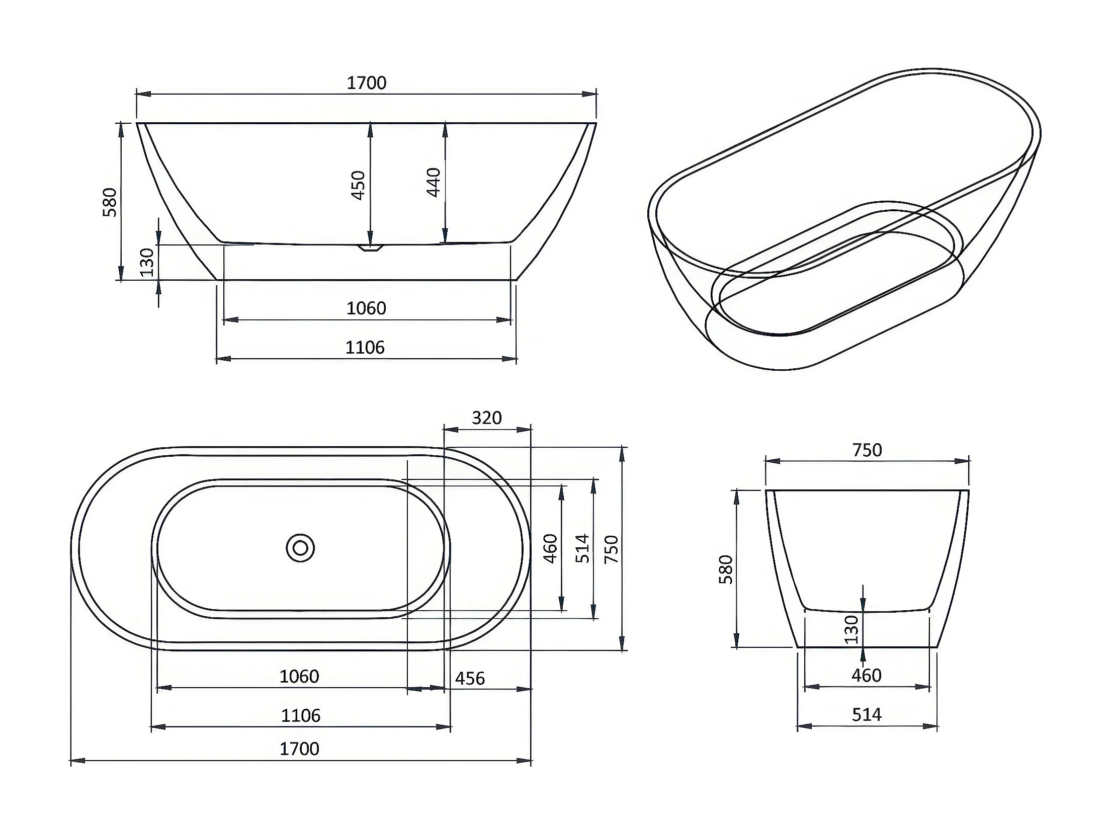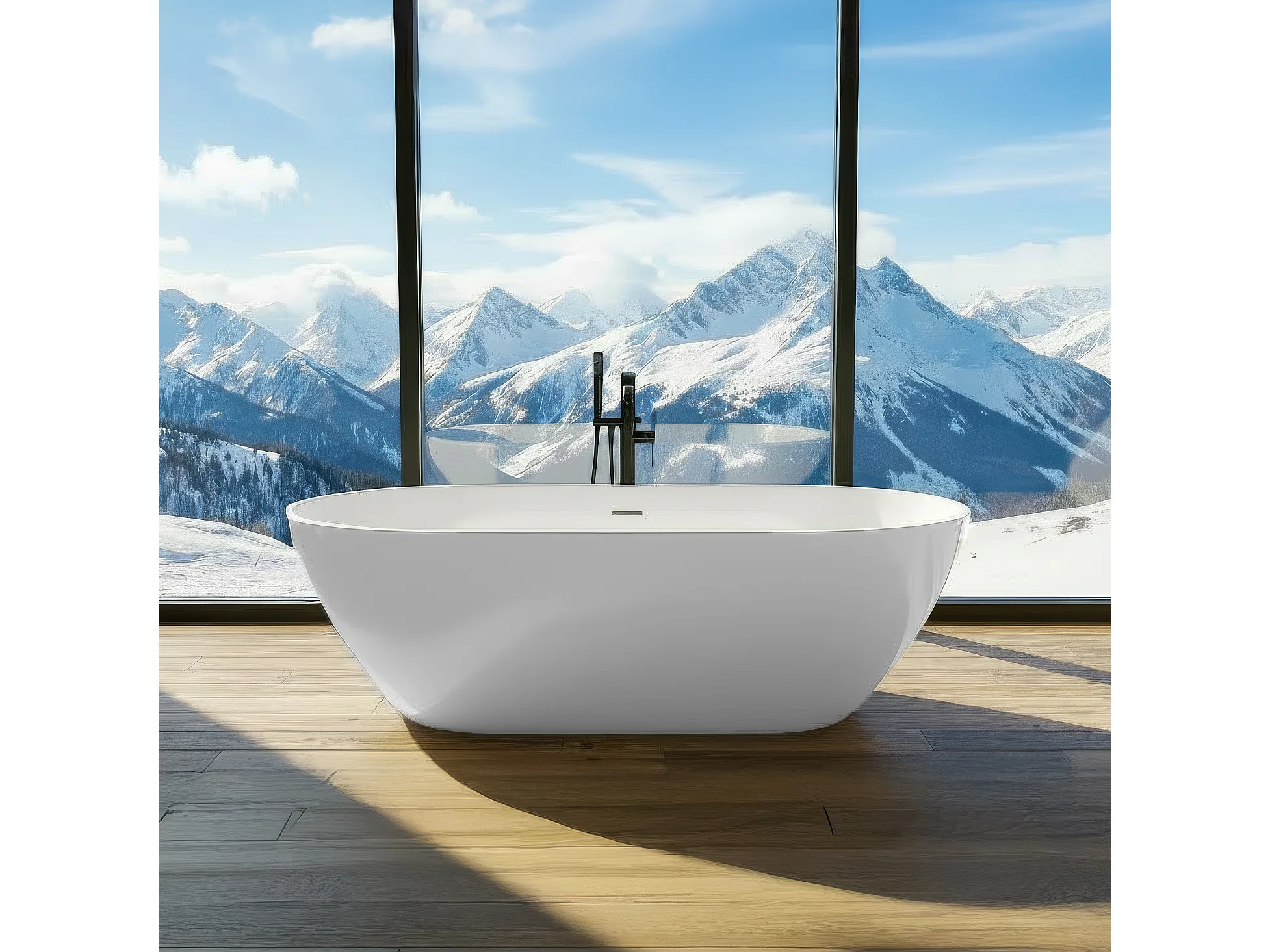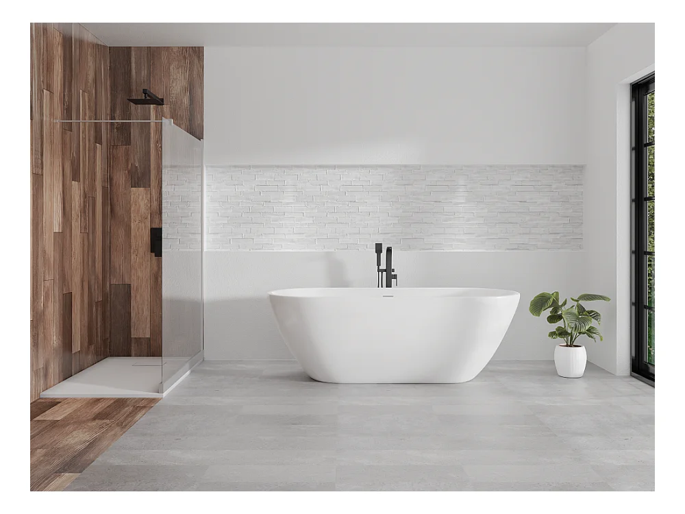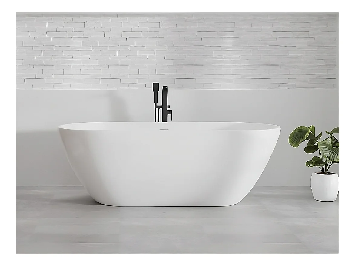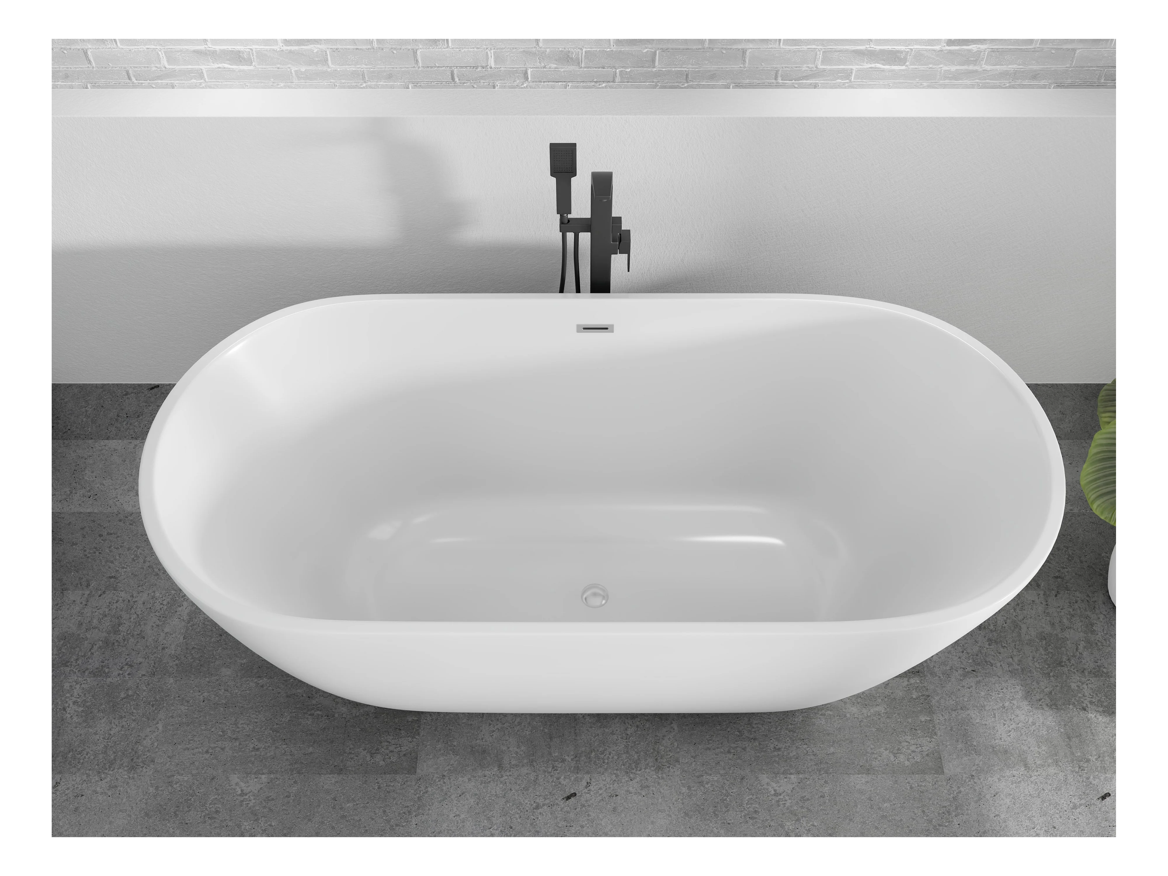 Baignoire autoportante îlot oval ASGER 170x75 acrylique blanc + Vidage à chromé