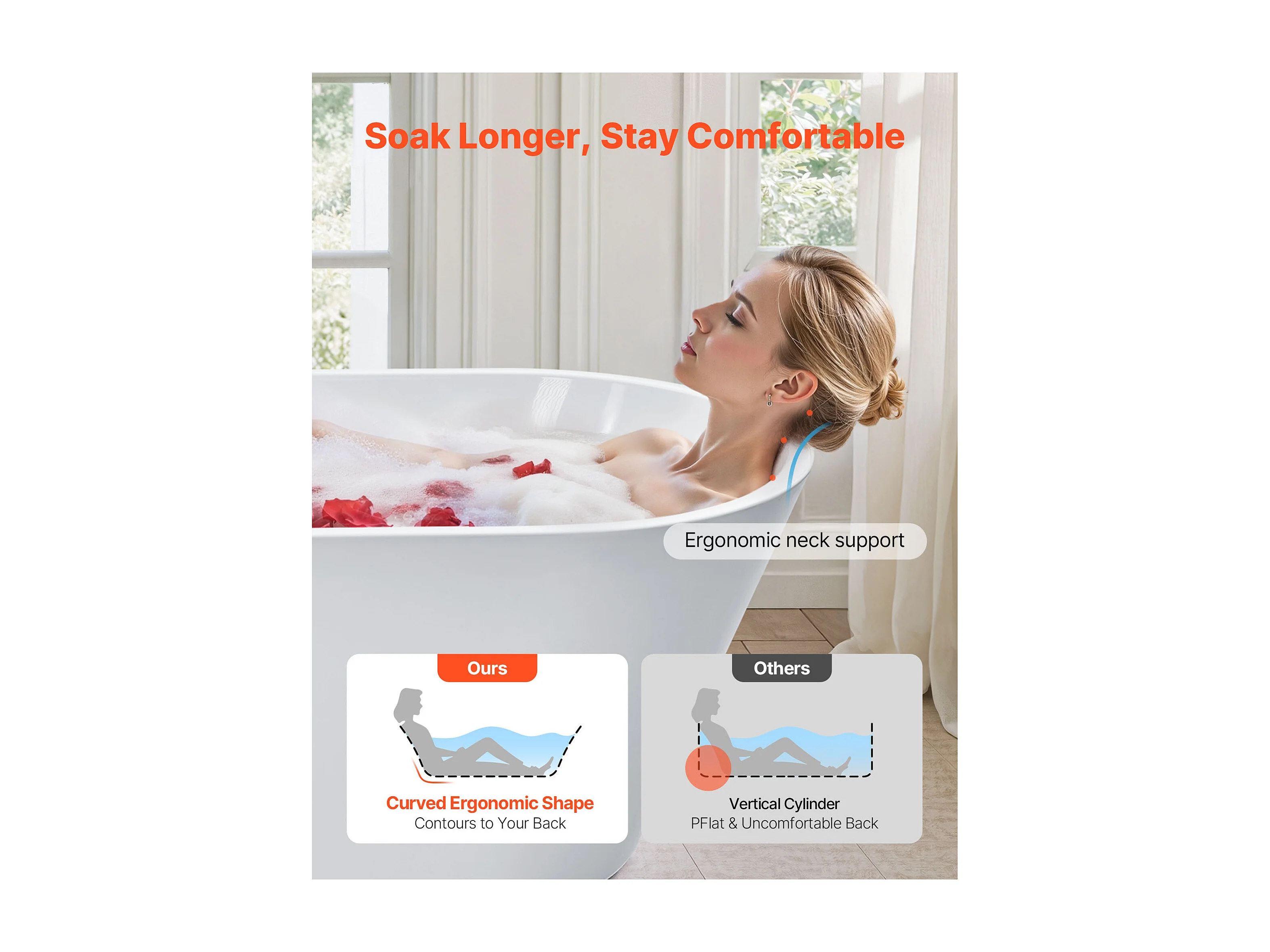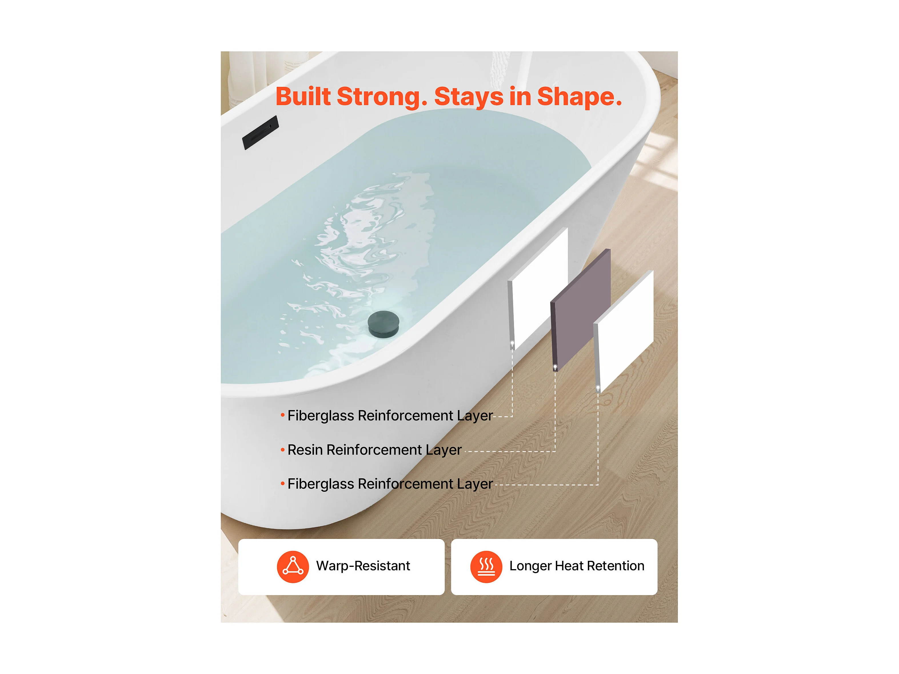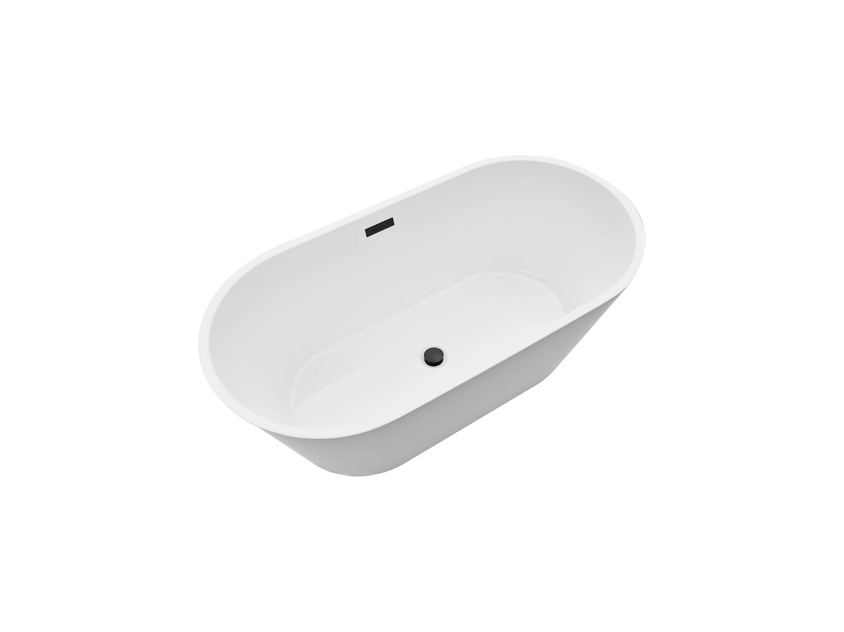 Baignoire Autoportante SucceBuy en Acrylique, Baignoire Îlot Moderne Blanche 150x75 cm, Grande Capacité 230 L, avec Trop-plein et Bonde Noir Mat, Salle de Bain