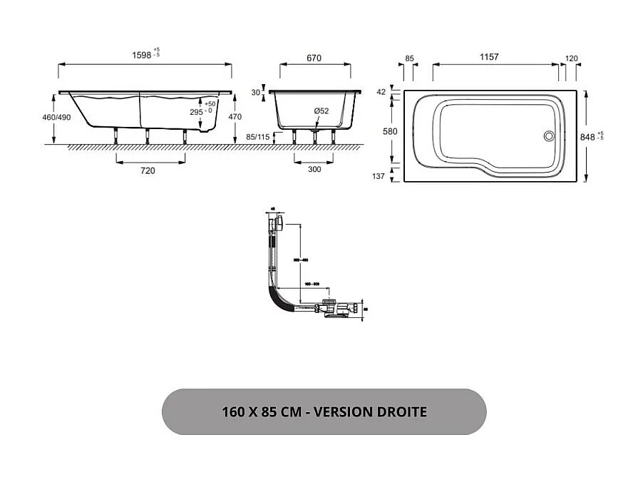 Baignoire bain douche JACOB DELAFON Malice + nettoyant 160 x 85, version droite