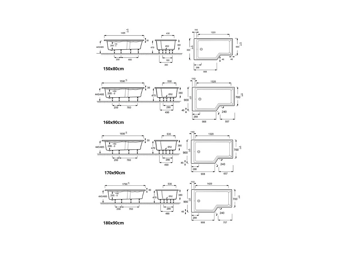 Baignoire bain douche 150 x 80 cm JACOB DELAFON Neo blanc brillant droite