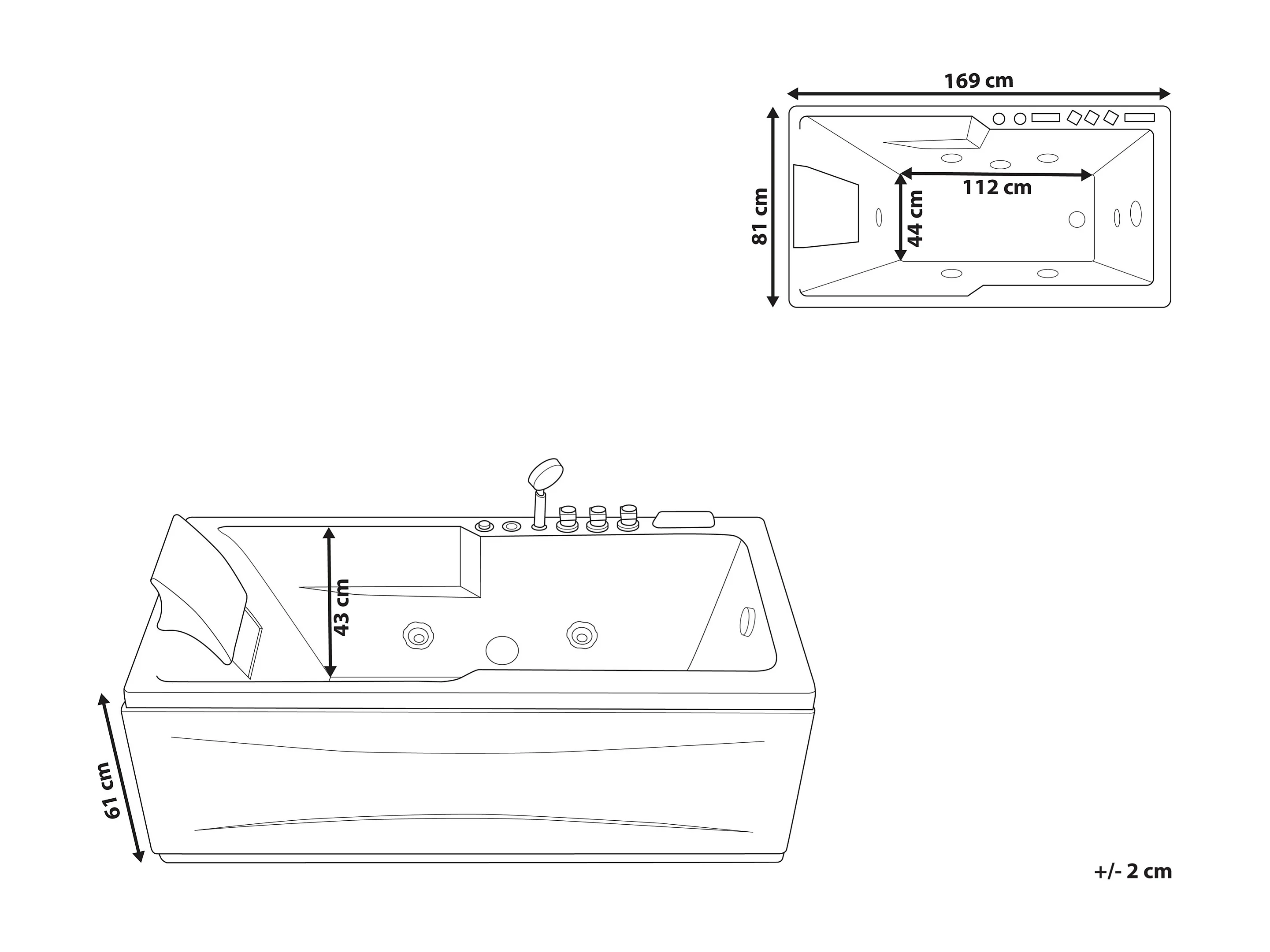 Baignoire d'angle à remous avec LED ARTEMISA Côté droite 170 x 80 cm Blanc